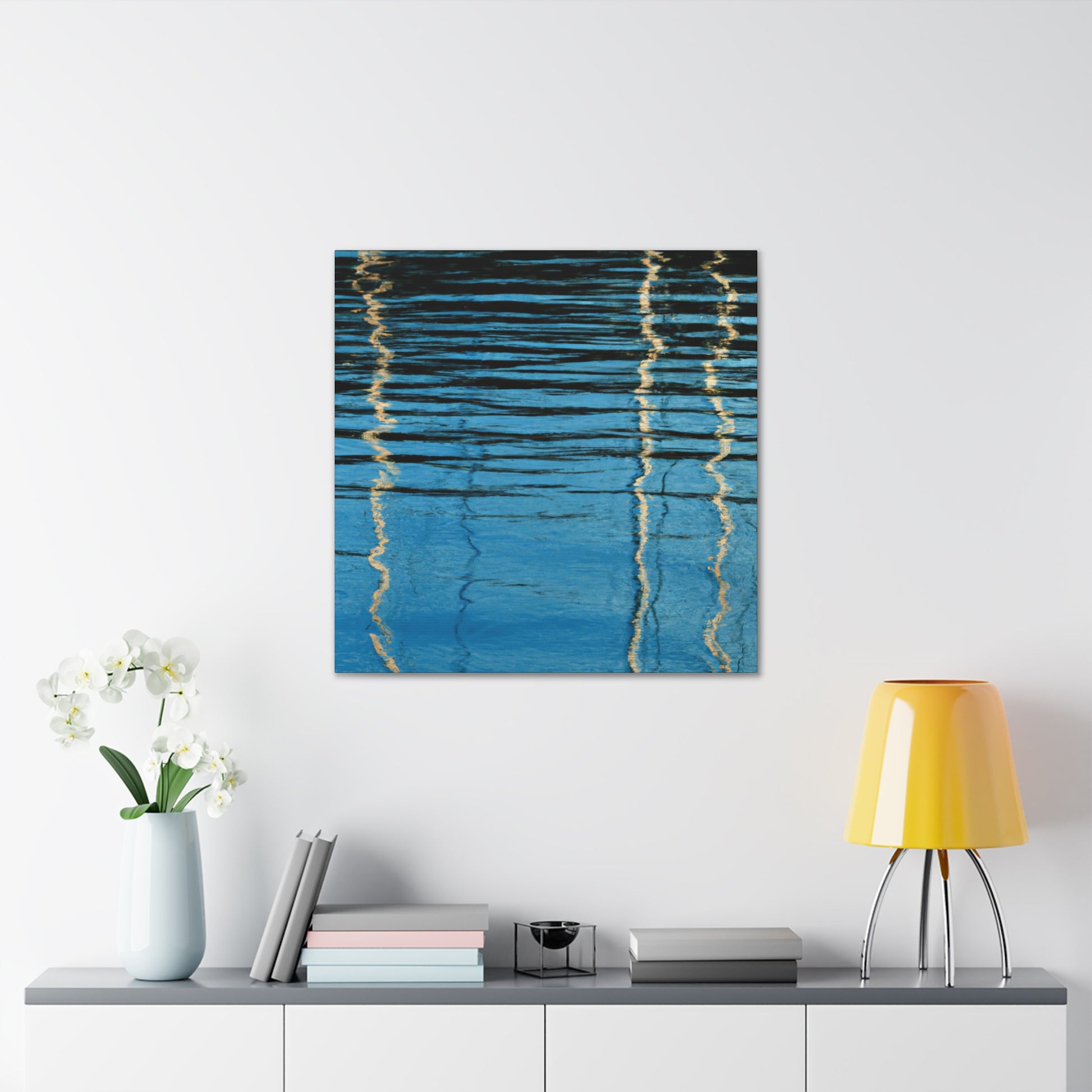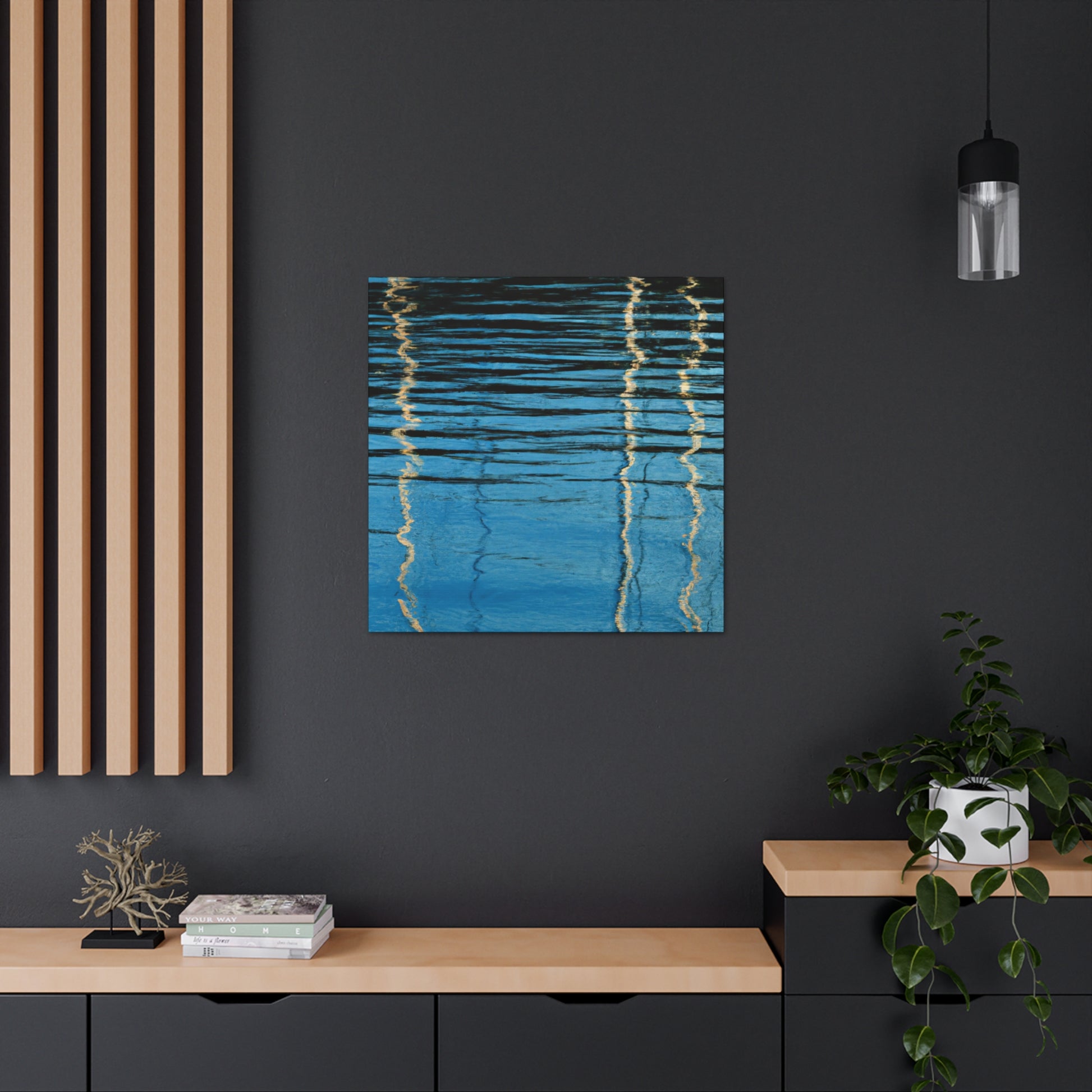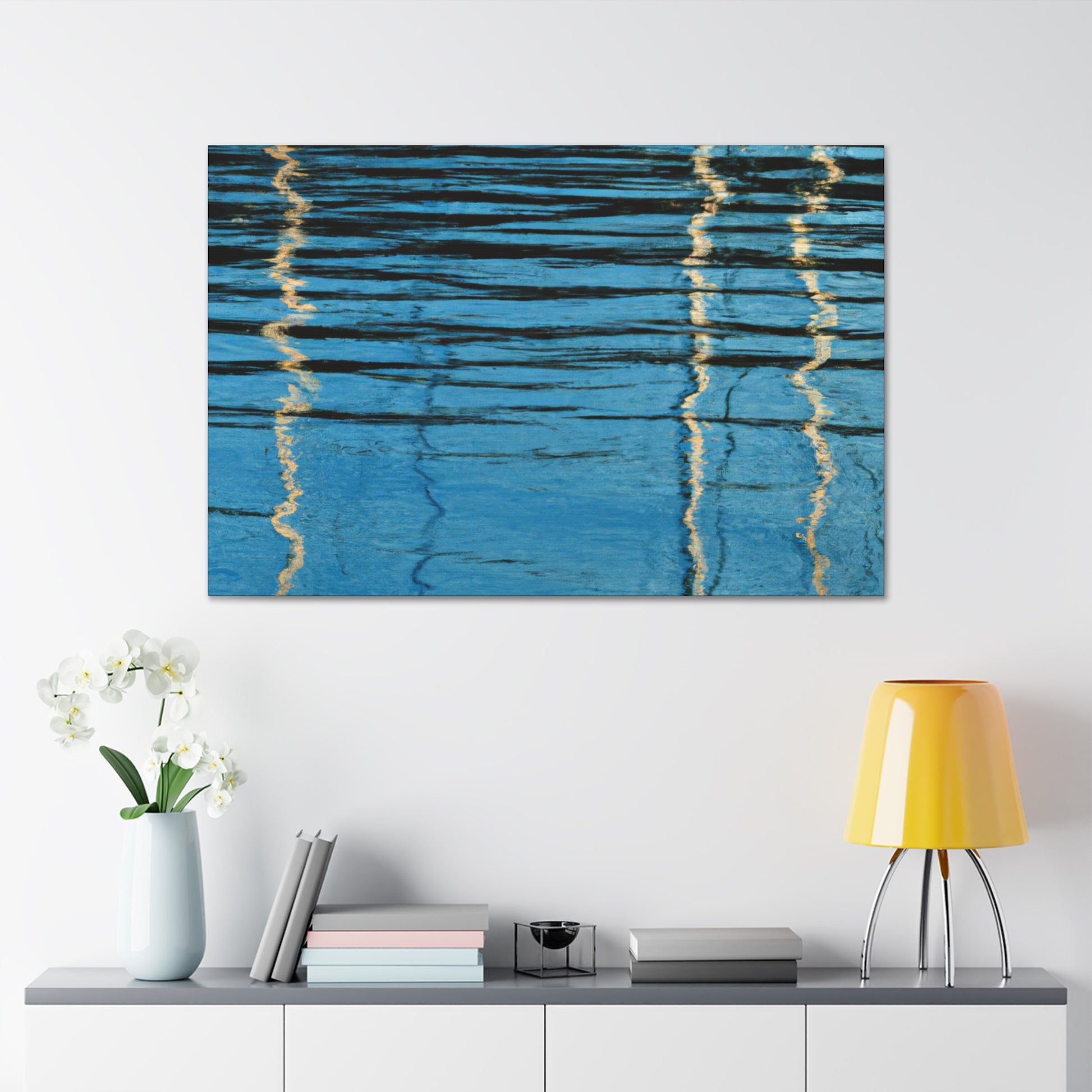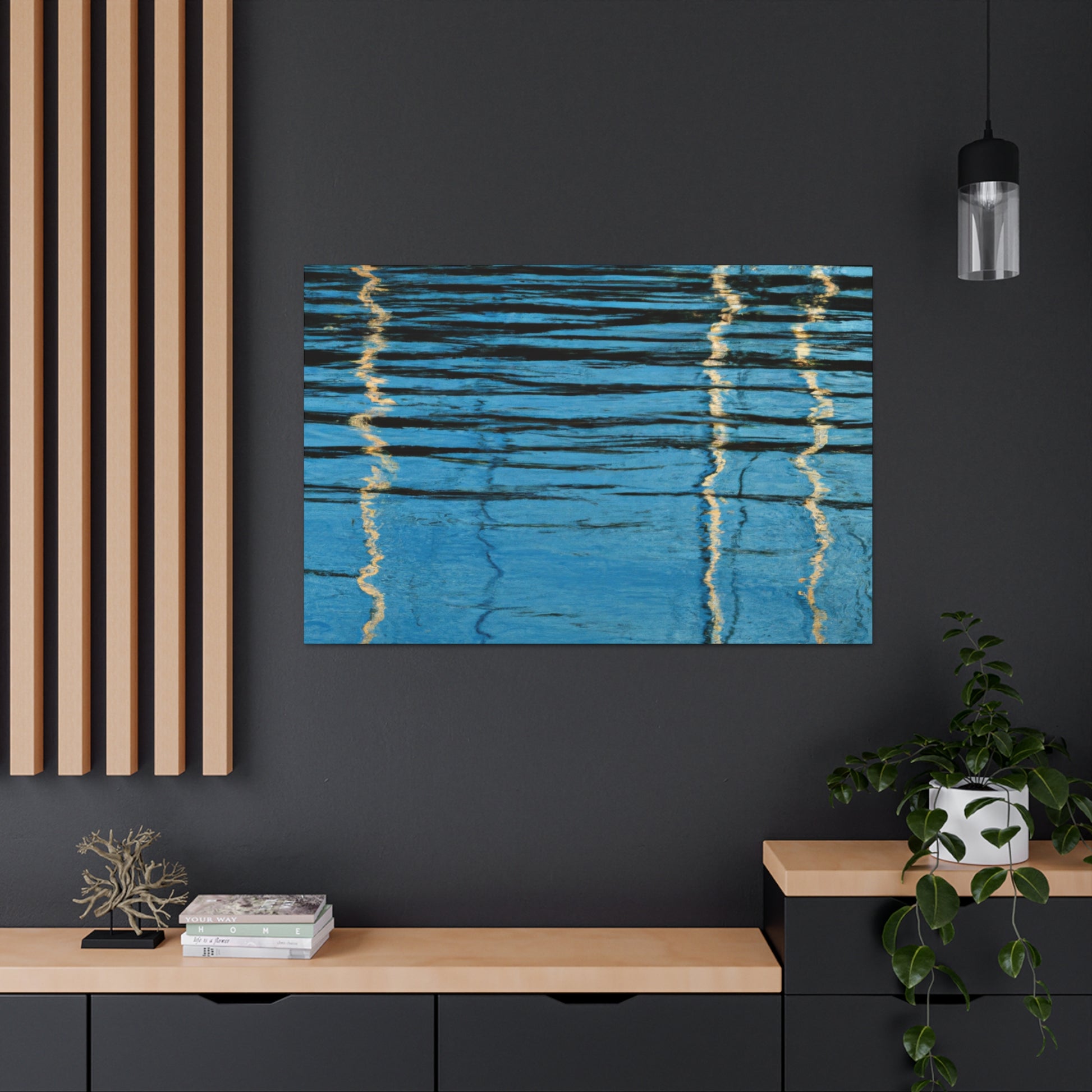 This stylish and modern canvas features stunning reflections with an exquisite waterpainting, which captures a beautiful artist's expression. Perfect for any room, living room, bedroom, the possibilities are endless! This canvas is a perfect choice for those looking to add a bit of style and sophistication to their home or office. #waterpainting #modernart #reflections #decor #homedecor #artwork #artist #canvas #beauty #photoart #interiordesignand