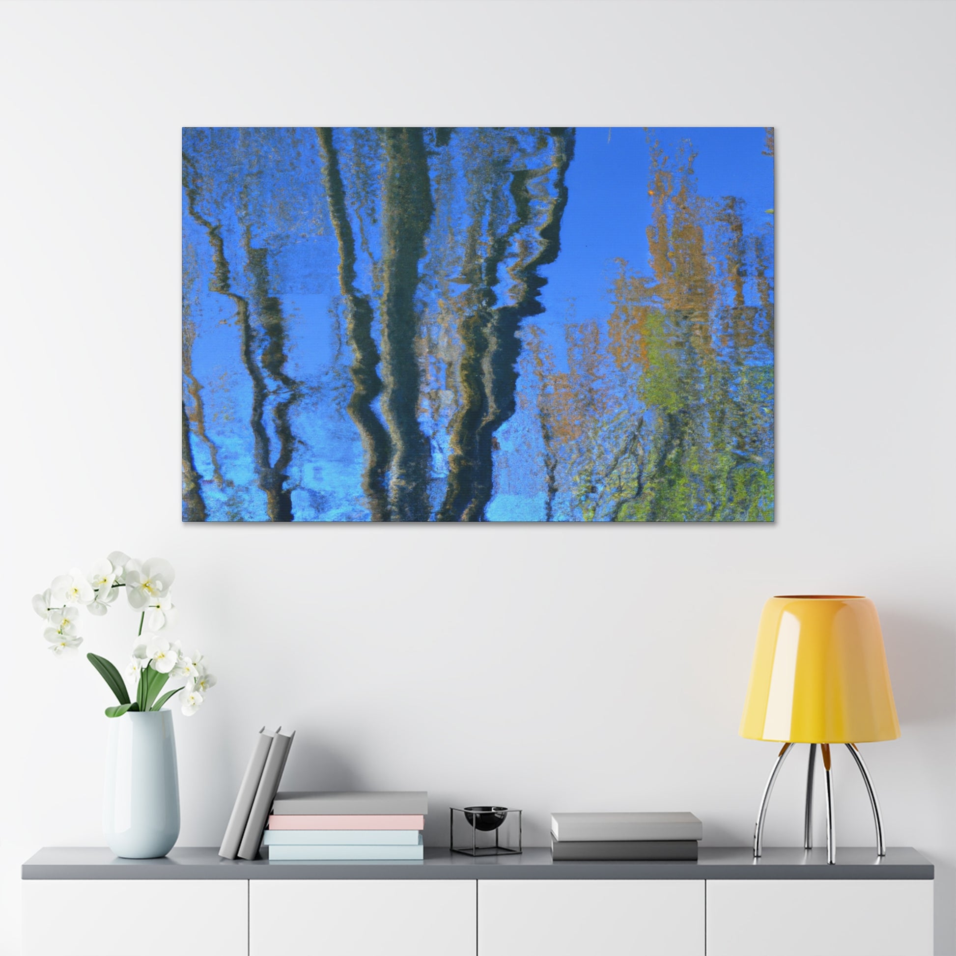 This canvas provides a meaningful and stunning take on reflections and water painting. The canvas contains soft blues, whimsical whites, and subtle turquoises that will bring any room to life. The painting was masterfully crafted by a great artist and will add a sense of artistic grandeur that cannot be rivaled. #canvas #painting #waterpainting #reflection #art #colorful #grandeur #whimsical #blue #turquoise #statementpiece #and