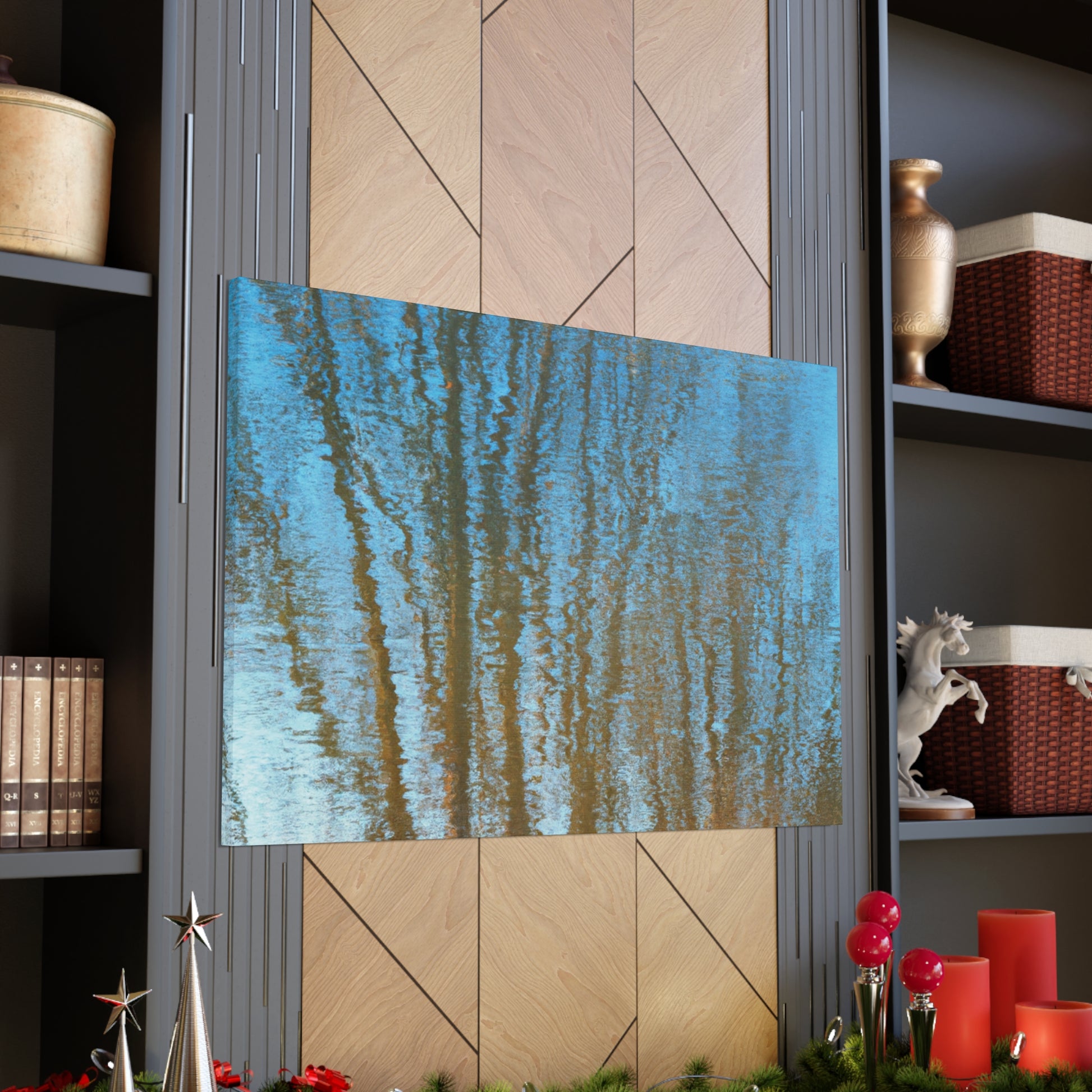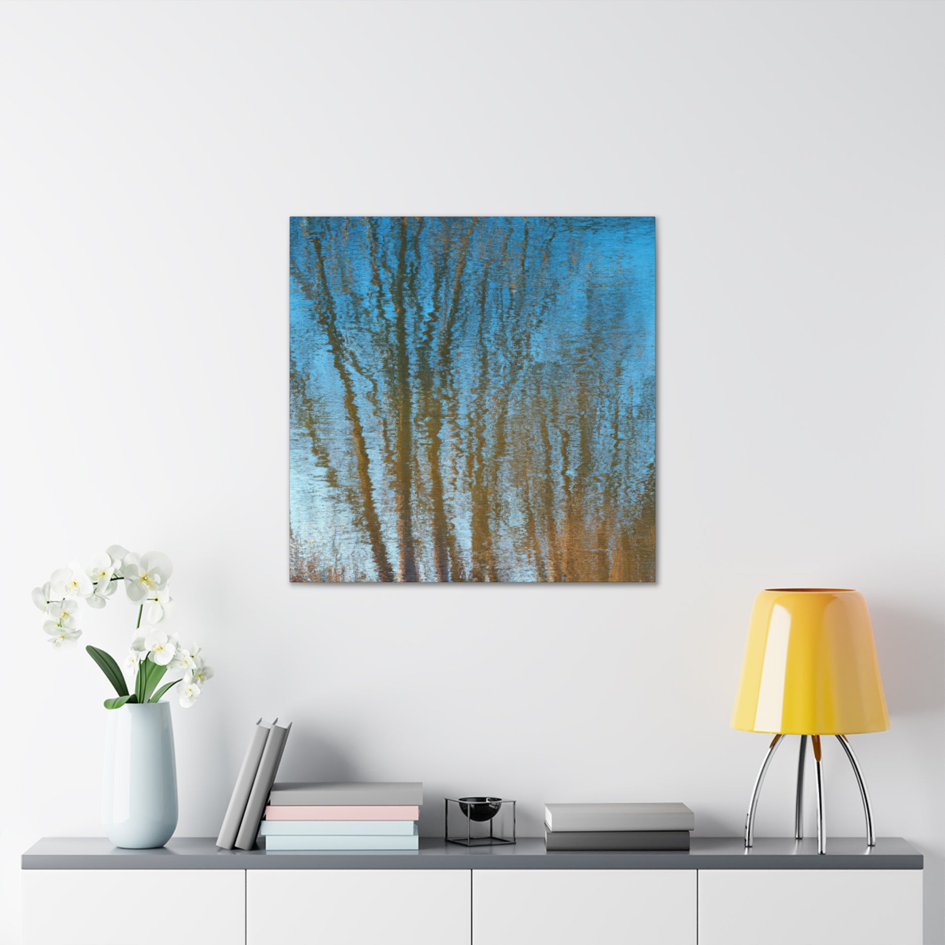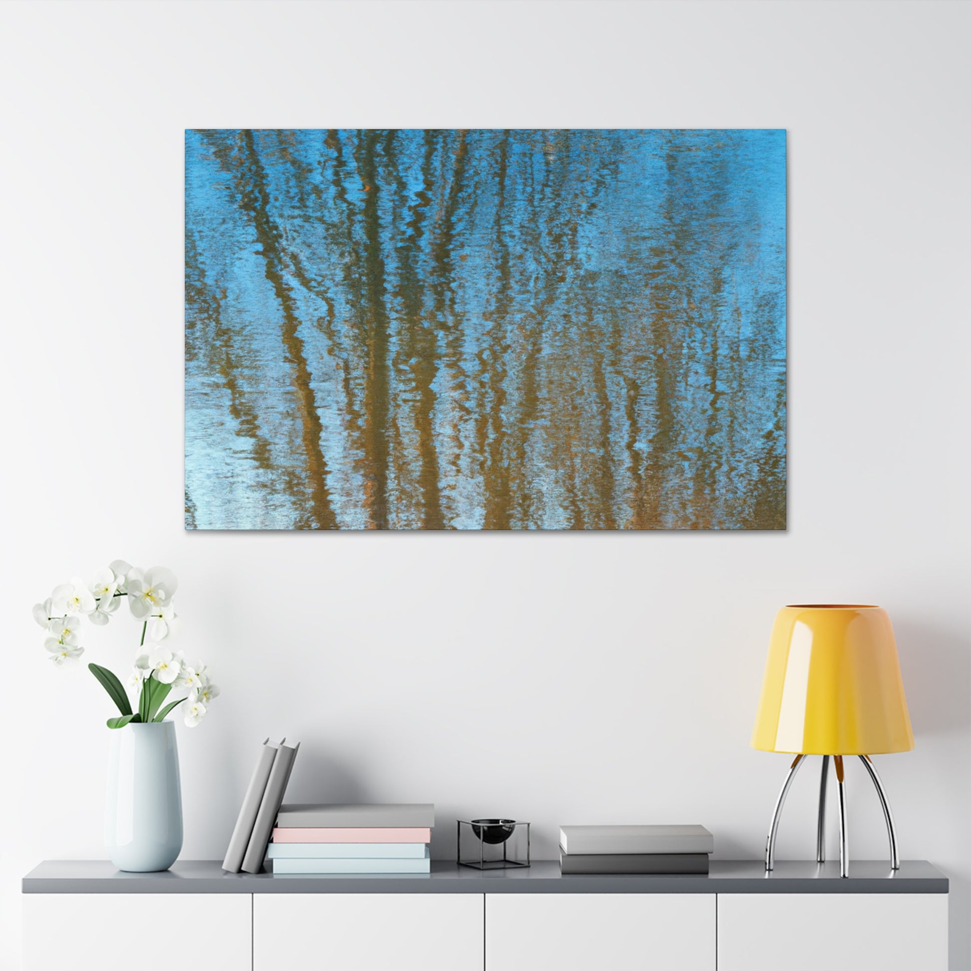 This one-of a kind canvas features the beauty of reflections and water painting, depicting a vivid landscape in vivid shades and tones. Each canvas is hand-crafted and signature to the artist. Perfect for brightening up any room, the unique and creative design makes a wonderful finishing touch. #canvas #painting #artwork #reflections #waterpainting #landscape #vividcolors #tones #handcrafted #signaturetotheartist #uniqueandcreative #interiordesign