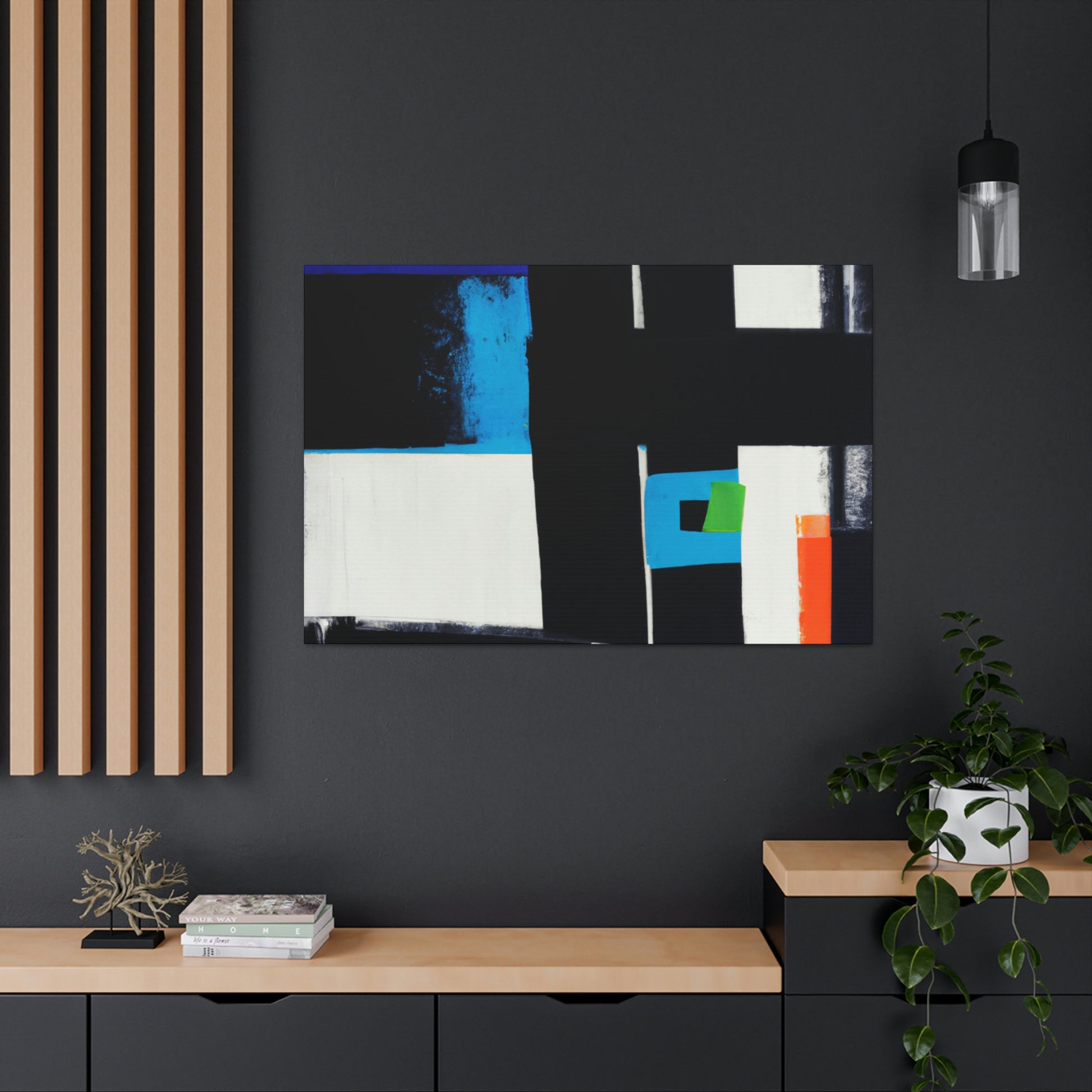 This abstract office canvas painting is the perfect way to bring some art and serenity to your work space. The colors in the painting are dark but with a hint of brightness, creating a beautiful contrast. The artwork is also well-crafted and durable, thus ensuring a long-lasting and sophisticated touch to your space. Whether you hang it up in a private or public office, the beautiful abstract painting is sure to be a conversation starter. #abstractoffice #pinting #canvasart #moderncanvas #officesetting #artdecoration #designerartwork #contemporaryart #radiusart #livingroomdesign #homedecoration and #abstractcanvas
