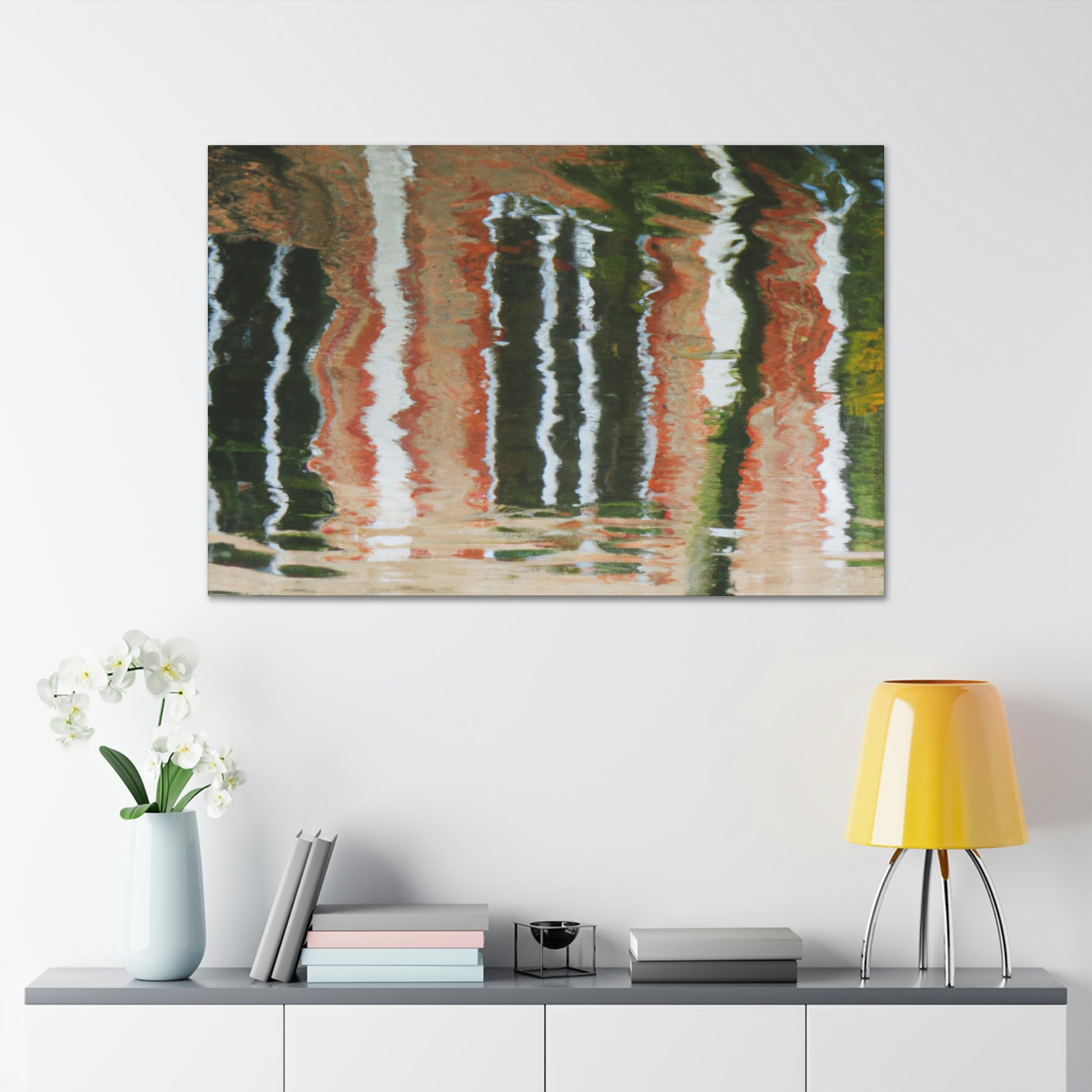 This is an awe-inspiring canvas of reflections and water painting. It captures the peacefulness and elegance of the scene and instantly draws you in. This canvas is professionally hand-stretched and printed and is sure to be a timeless piece in any art-lovers home. #waterpainting #reflections #artsy #fineart #canvas #interior #interiordesign #home #nature #beauty #relaxing