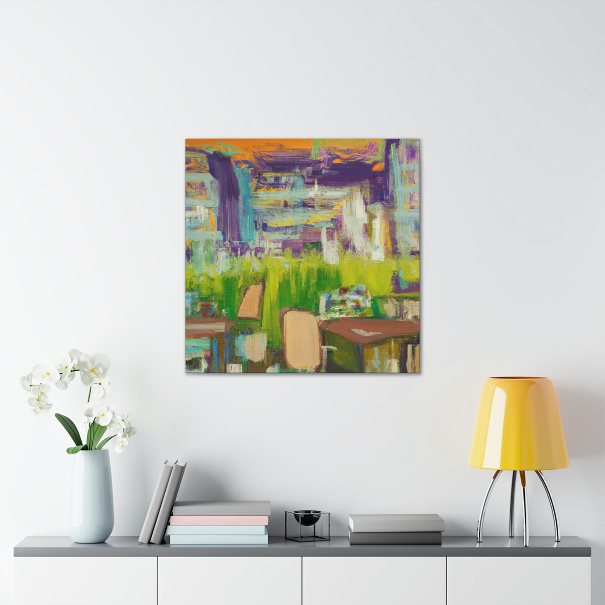 This canvas of abstract office painting adds a calming feeling to the atmosphere of any room or office. With hints of muted blues, greens, and yellows, it gives off a relaxing vibe that works in any setting. The muted colors, combined with its abstract design, will make it a great conversation piece as it adds a unique pop of color to the wall. With its eye-catching appeal, this piece will bring a sense of stylish elegance to any dull room. #abstractpainting #canvaswallart #officedecor #calmingcolors #abstractart #mutedcolors #calmingvibe #style #popofcolor #dulrooms #eleganceand