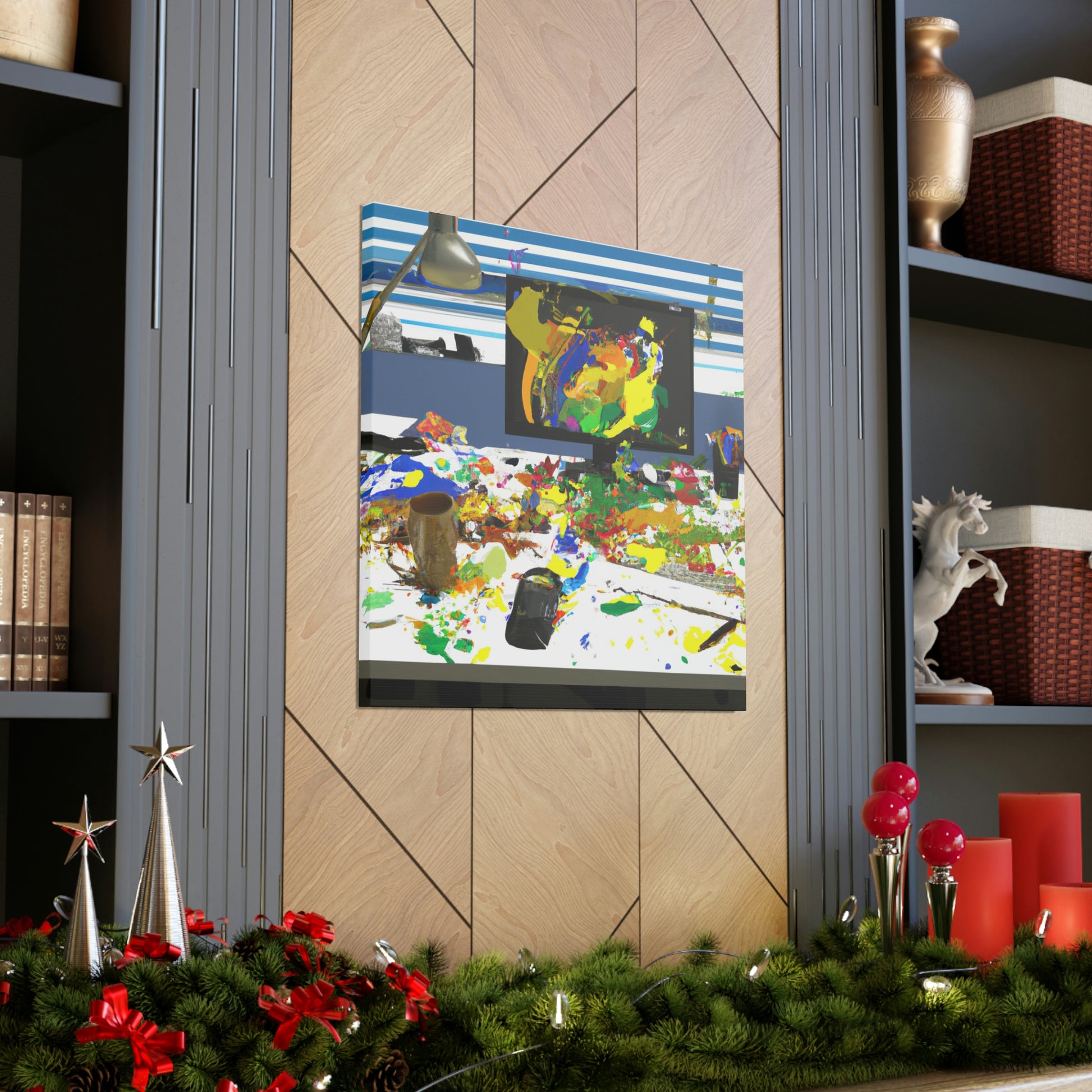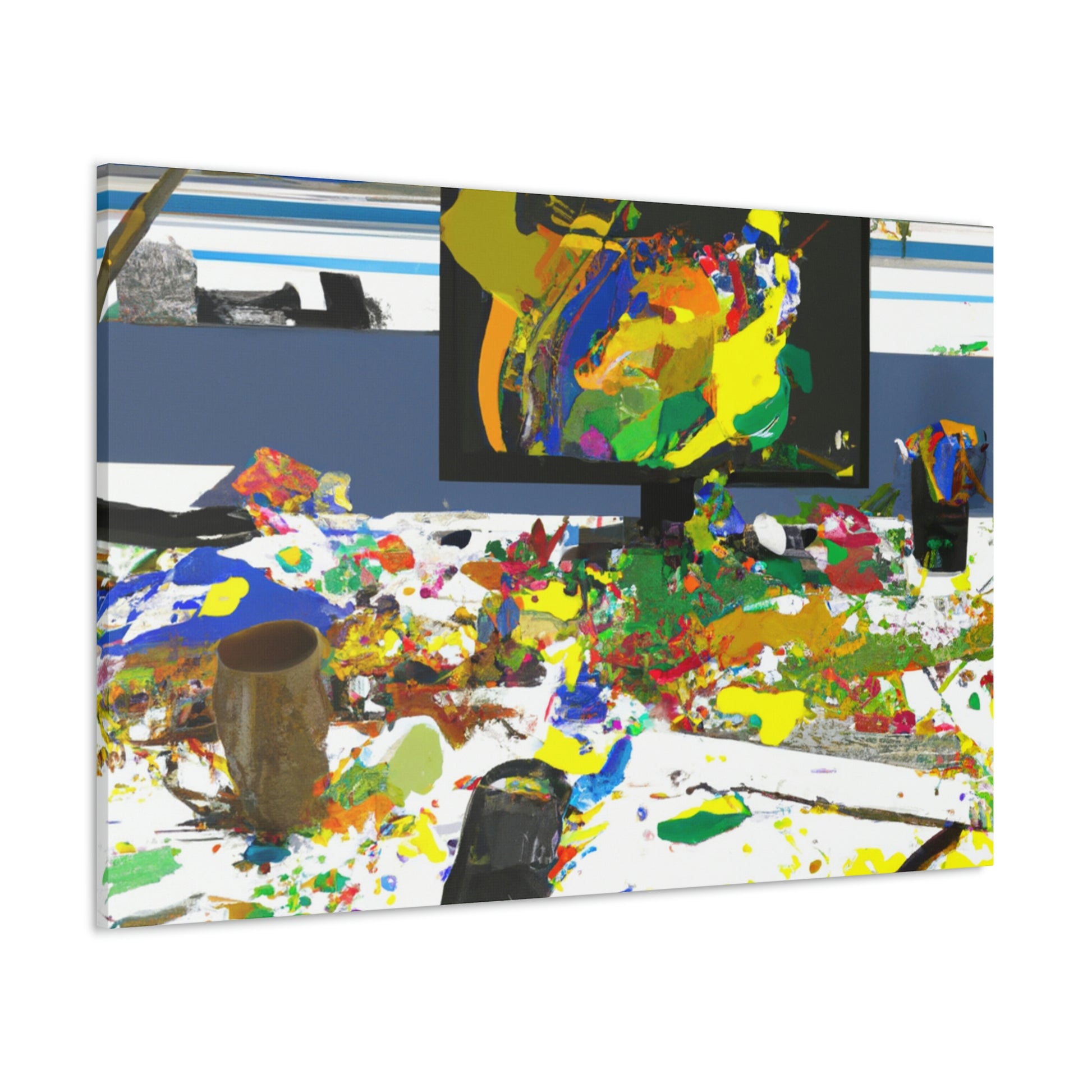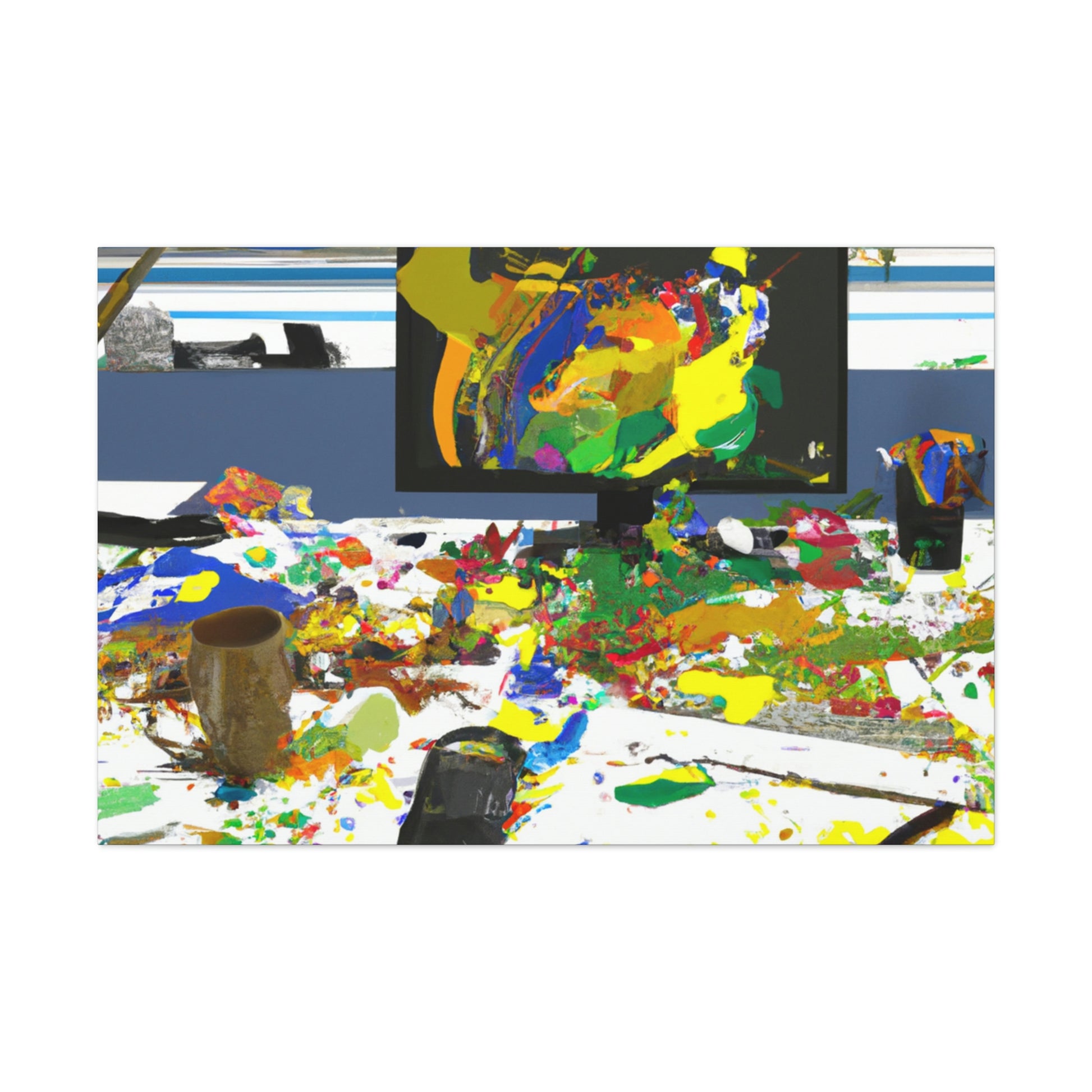 This original abstract painting is sure to add a statement piece to any office. Adorned with bold, bright colors and designed to draw the eye, this canvas reflects the creativity and energy of a great artist. Perfect for any work space, the framed piece will create a talking point and draw the eye. #abstractpainting #artwork #officeart #colorful #statementpiece #boldcolors #originalart #greatartist #abstractart #canvasart and #framedart