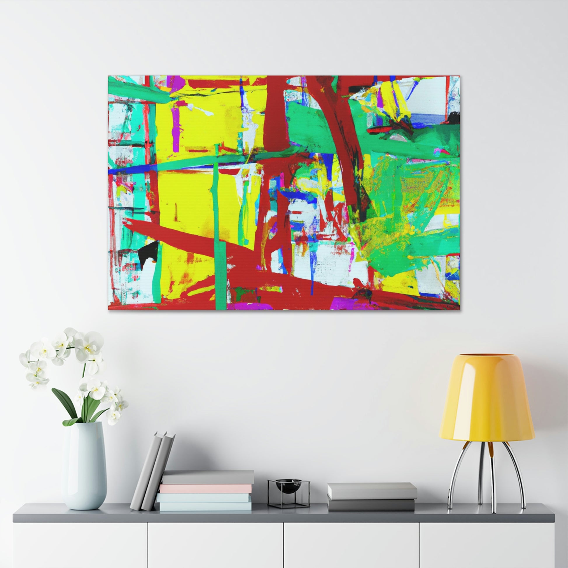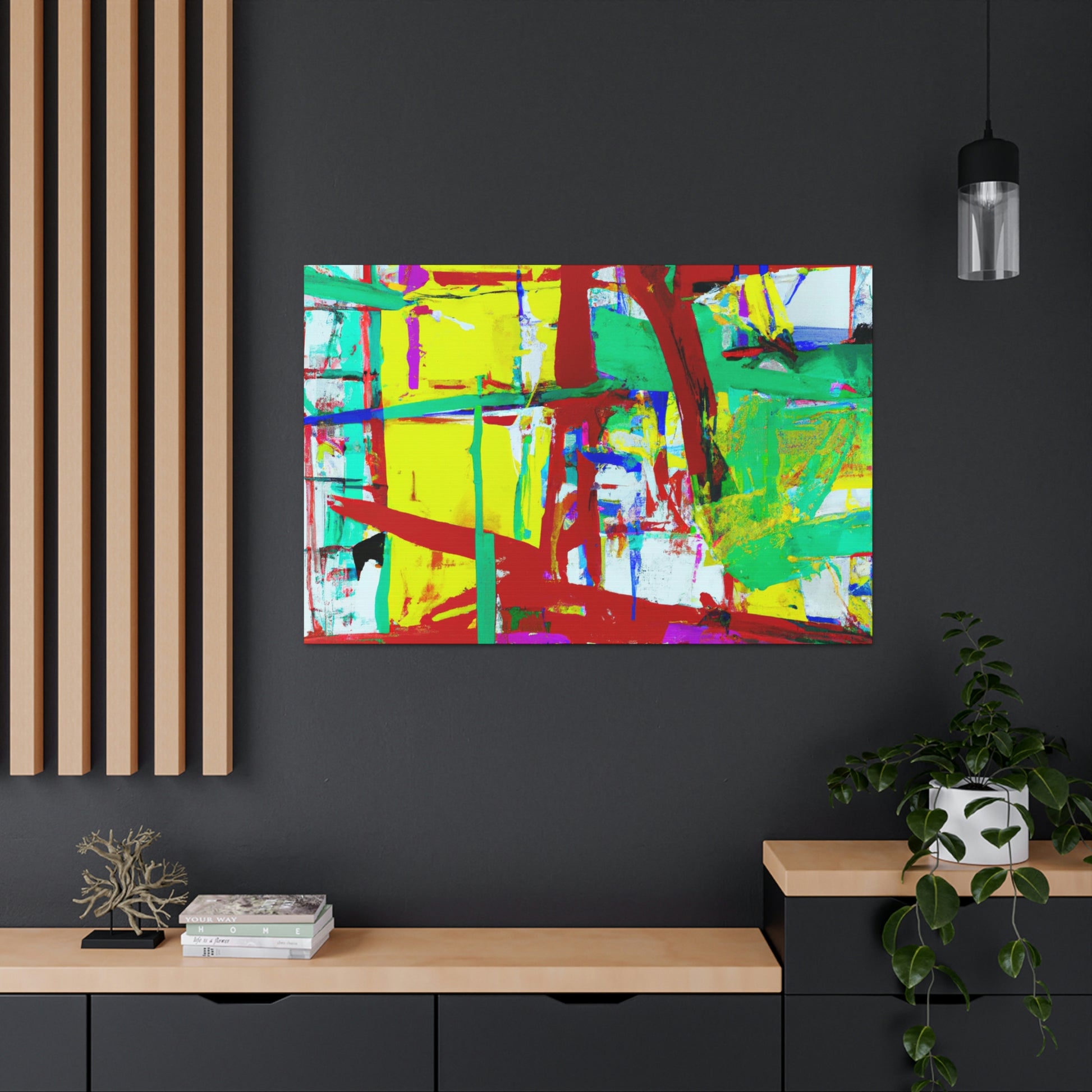 This canvas features an abstract painting by a great artist, bringing a modern look to any office. Its bold and vibrant colors add a touch of personality and style to liven up the room. The high-quality canvas is stretched and stapled to a solid wood frame for a durable and long lasting finish. Hang this canvas in any office, living room, or bedroom to make a statement. #abstractart #officeart #artdecor #canvasart #modernart #wallart #artist #statementpiece #decorideas #officeinspo #interiordesign.