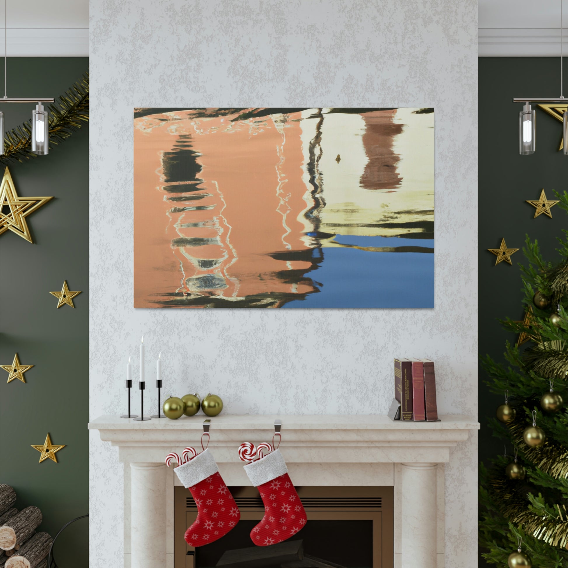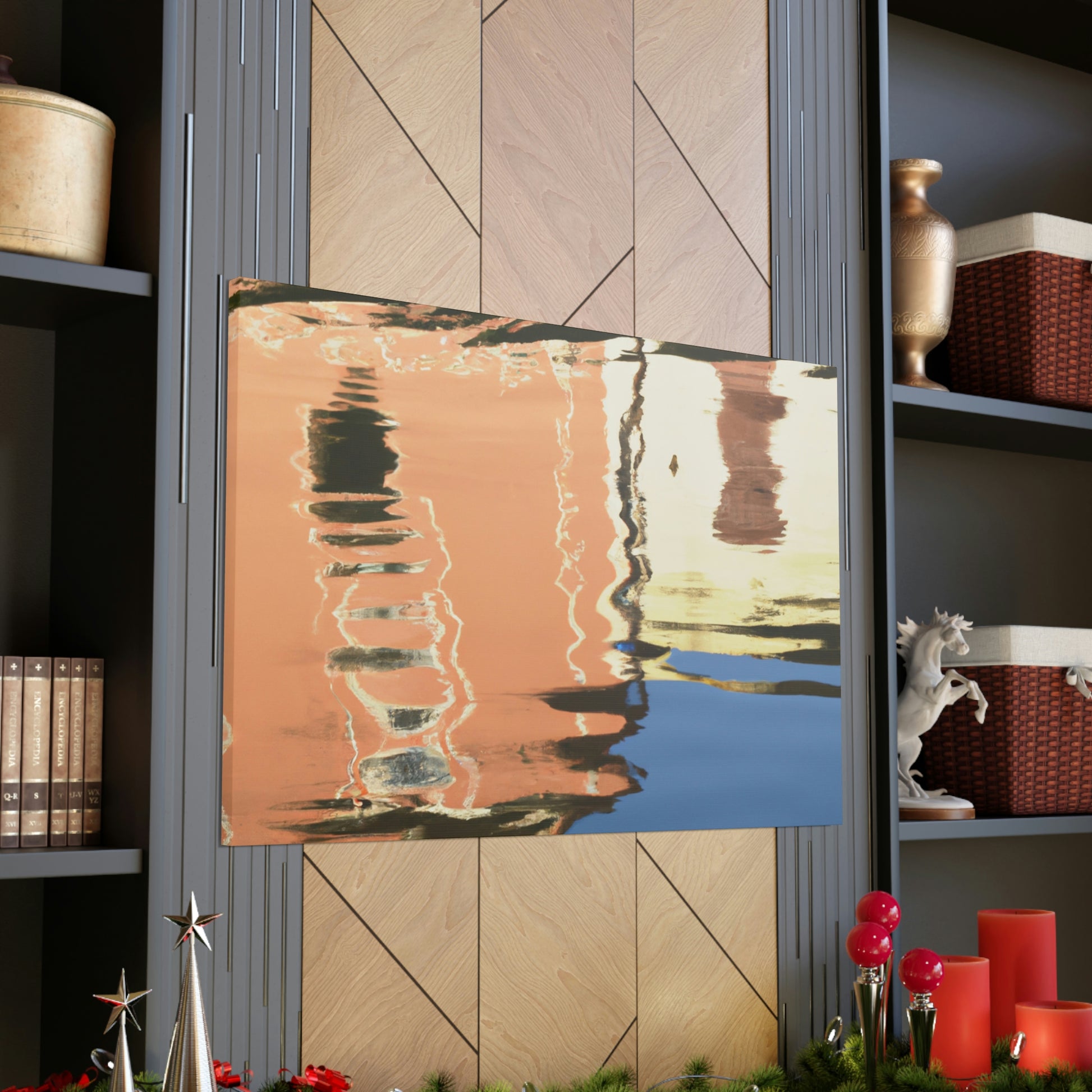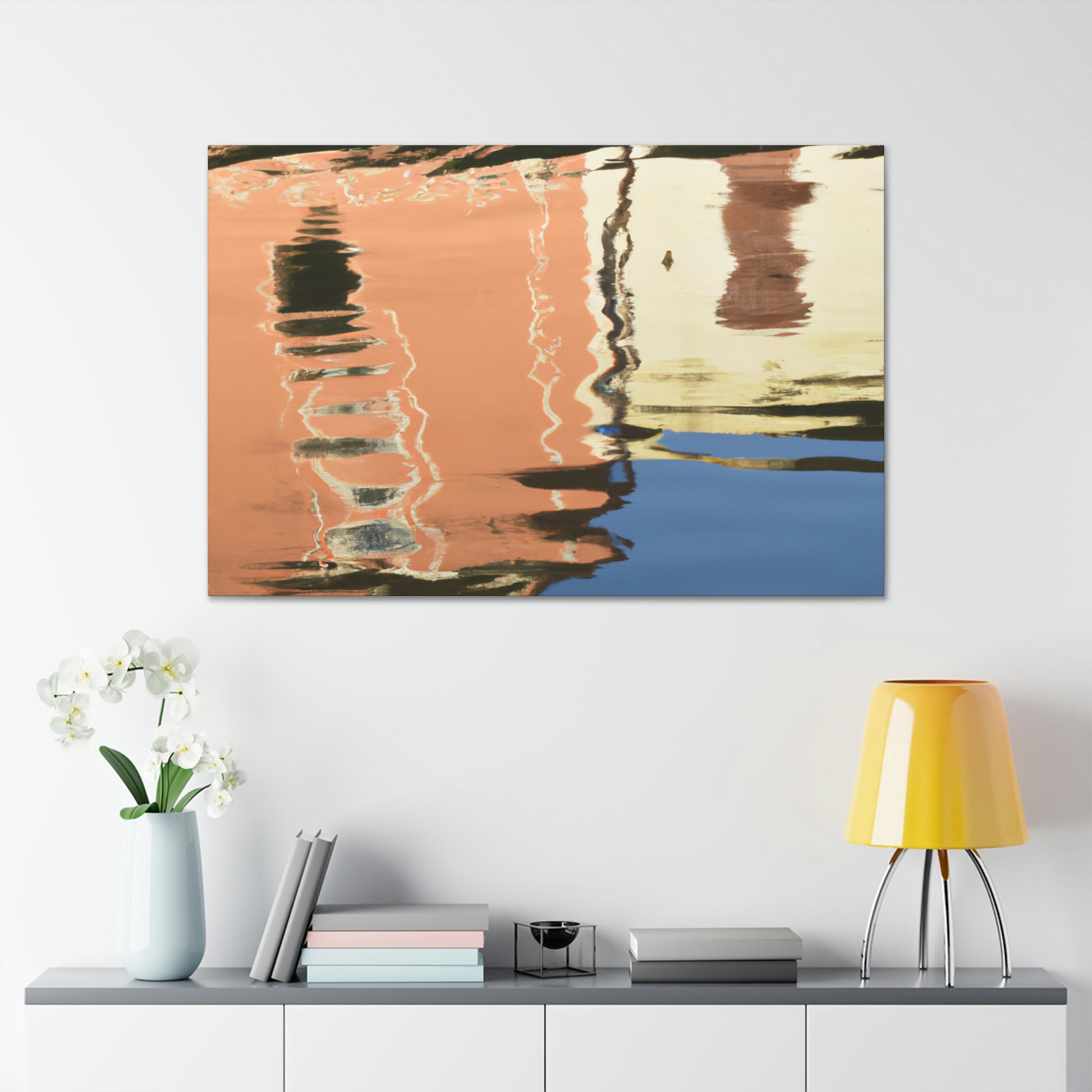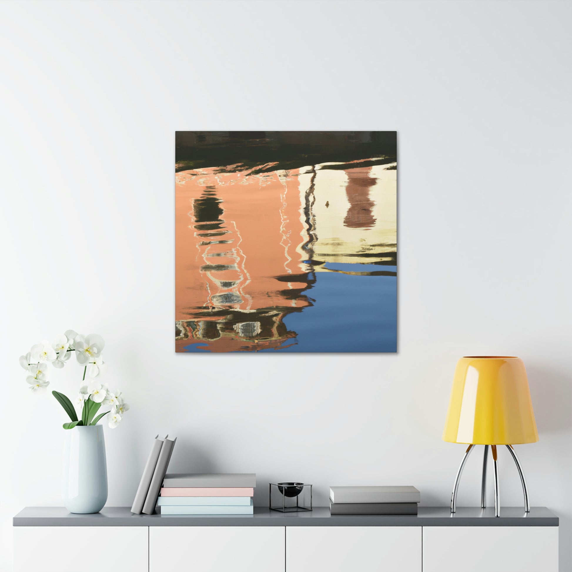 This painting catches you in its beauty; lush green foliage and clear, still waters create a tranquil atmosphere with a peaceful reflection of the wondrous sky above. Hand painted with attention to detail, this canvas gives a sense of awe and inspiration. Perfect for your home, this enchanting piece will captivate viewers and make for a timeless addition to your artwork collection. #interiordesign #homeart #painting #reflection #watersideart #canvasart #waterscape #scenicpainting #visualarts #reflectionart #artistandartwork