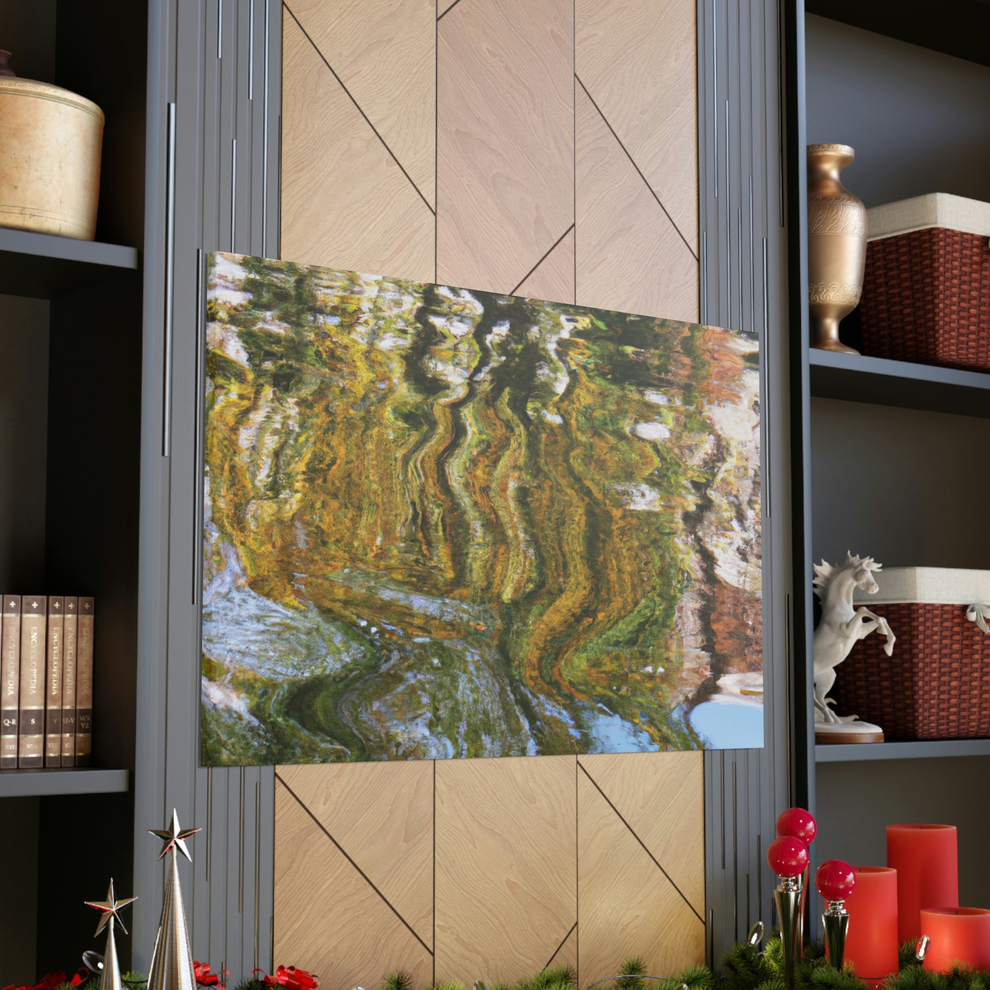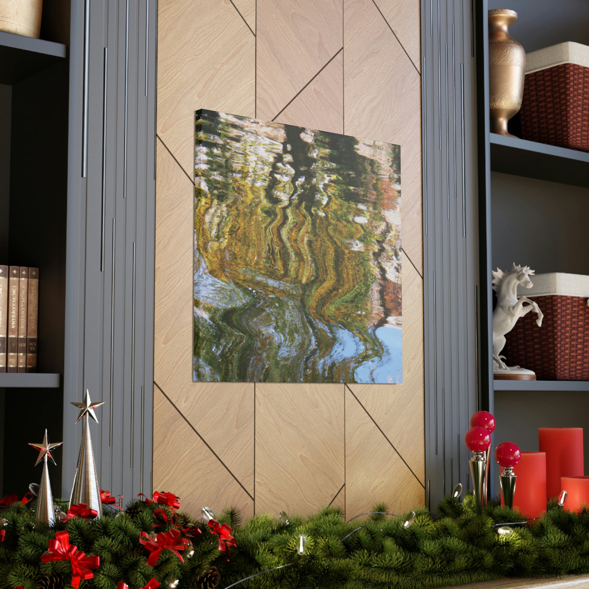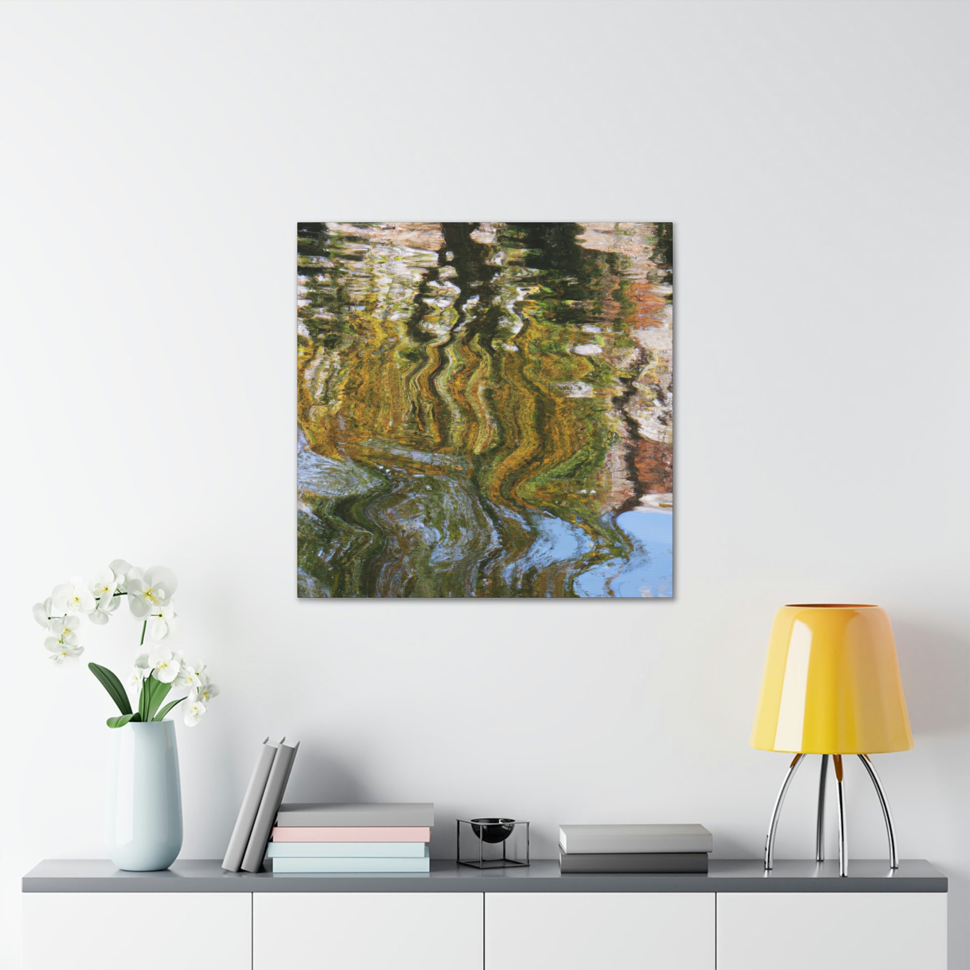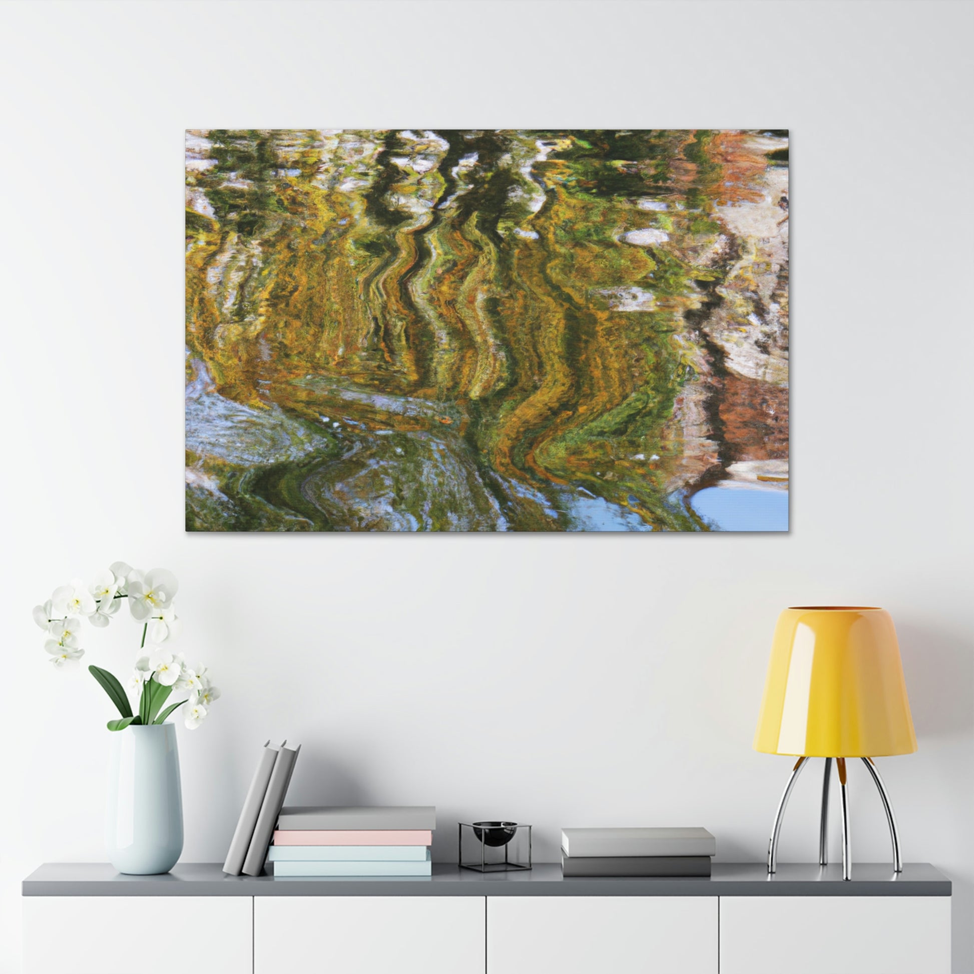 This artistic canvas features a unique blend of reflections and water paintings all in one. With bright colors and stunning details, this stunning art piece brings depth and beauty to any space. A great addition to any wall. #art #reflection #waterpaint #canvas #homedecor #wallart #modern #contemporary #artwork #creative #interiorand #decor