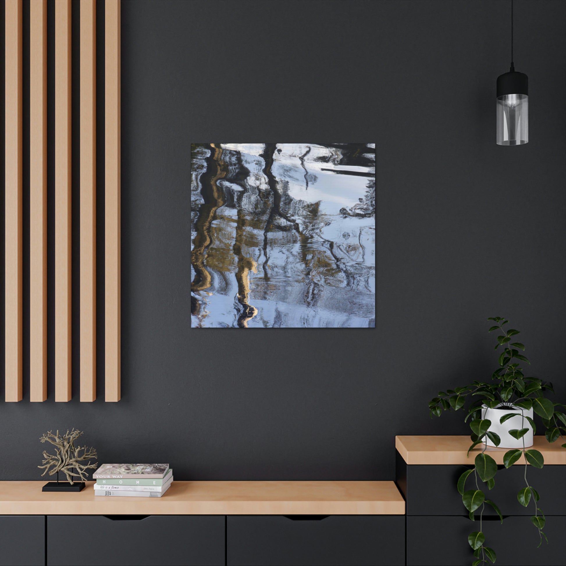 This canvas features a vibrant mix of colors and textures that reflect the creativity and boldness of a great artist. The detailed reflections and water painting bring life to any wall and add an artistic flair to any space. Perfect for channeling the inner artist in you to express yourself and let your creativity shine! #artist #painting #reflection #wallart #homedecor #canvas #expression #creativity #boldness #waterpainting #vibrancy and