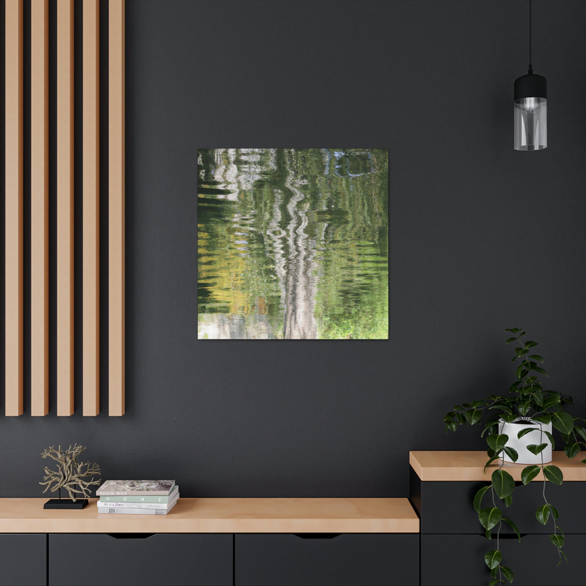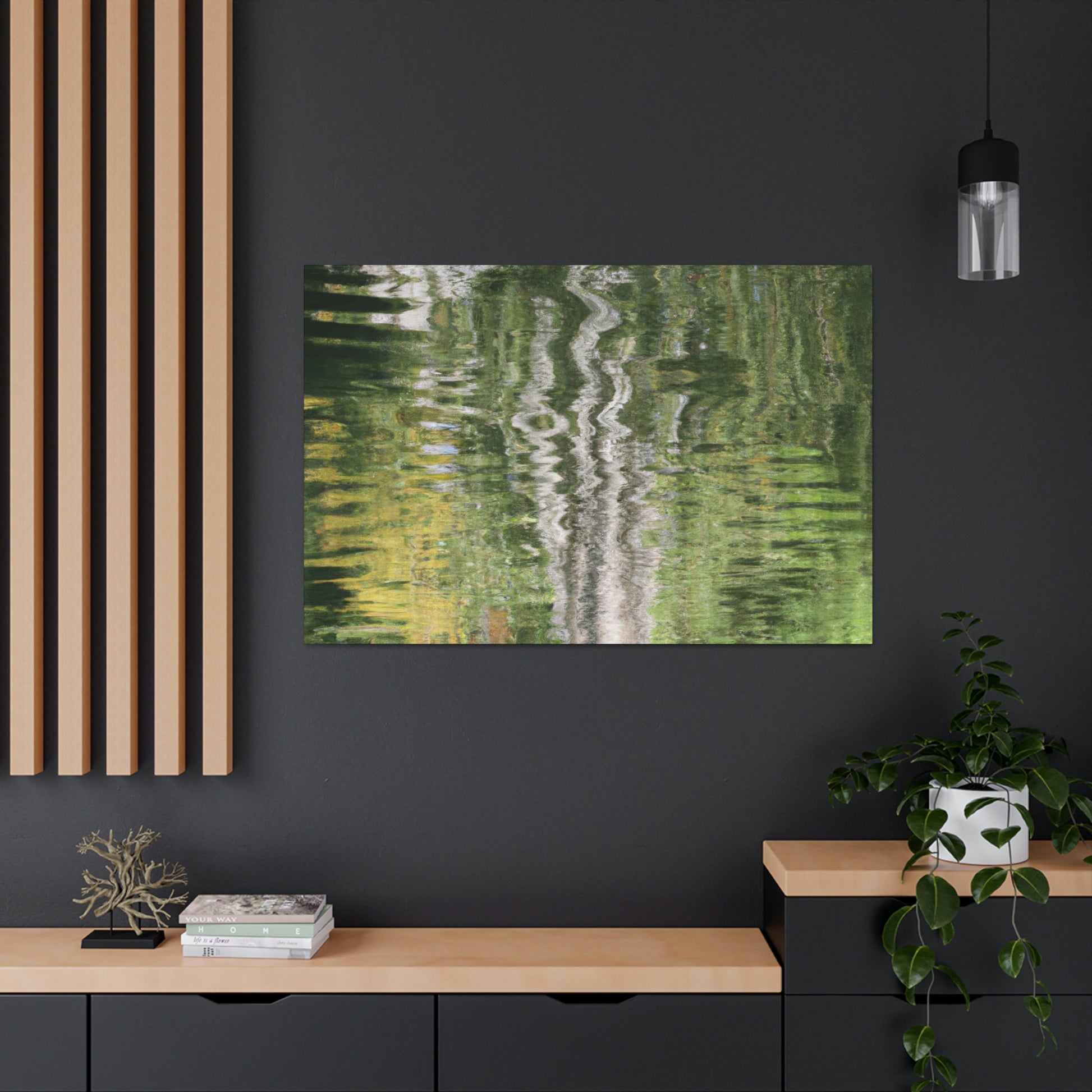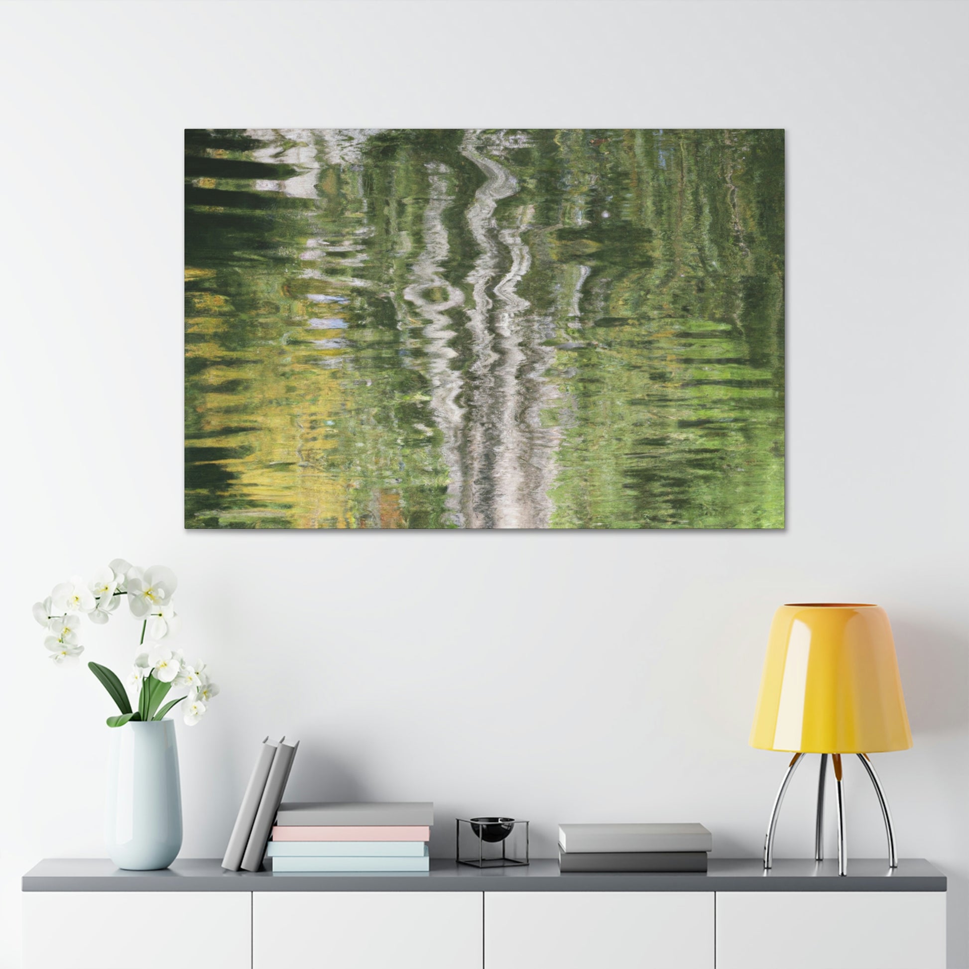 This stunning canvas captures the beauty of nature through reflections and the grace of watercolor painting. With its intricate detailing and mesmerizing colors, it will add charm and elegance to any space in the home. From classic to modern decor, this beautiful canvas will be the perfect addition to enrich a home's ambience. #canvasart #watercolor #painting #nature #reflection #decorating #elegance #interiorstyle #homedecor #homedesign #classyandmodern