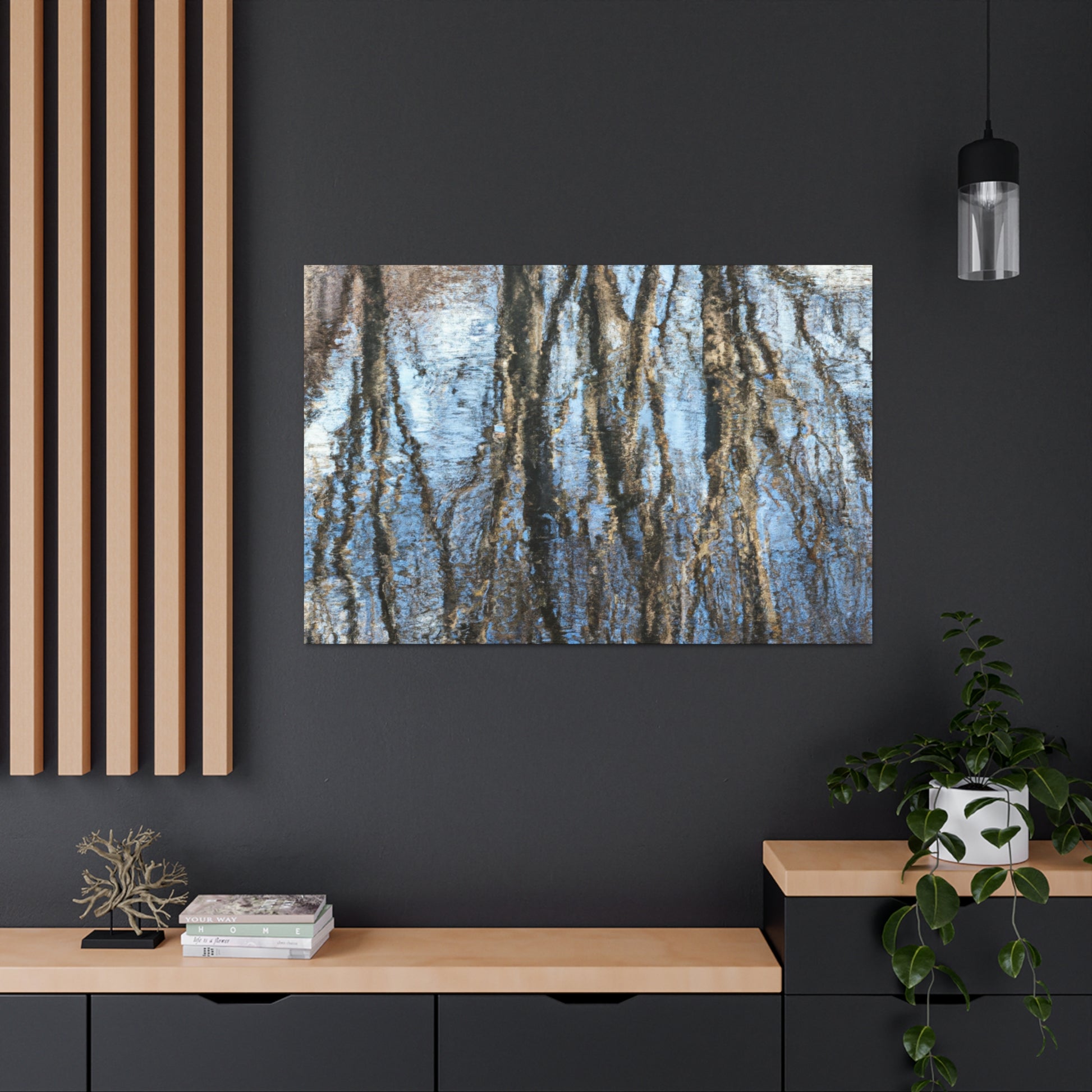 This canvas art is a created to reflect the beauty of nature and an artist's eye for detail. Containing both reflections and water colors painted with precision, this piece is bound to bring life to any space. Perfectly crafted to deeply captivate, this canvas is sure to impress any audience. #WATTERPAINTING #REFLECTIONS #CANVASART #MODERNART #ARTIST #CRAFTING #NATURE #ARTWORK #CREATION # MASTERPIECE #IMPRESSION and