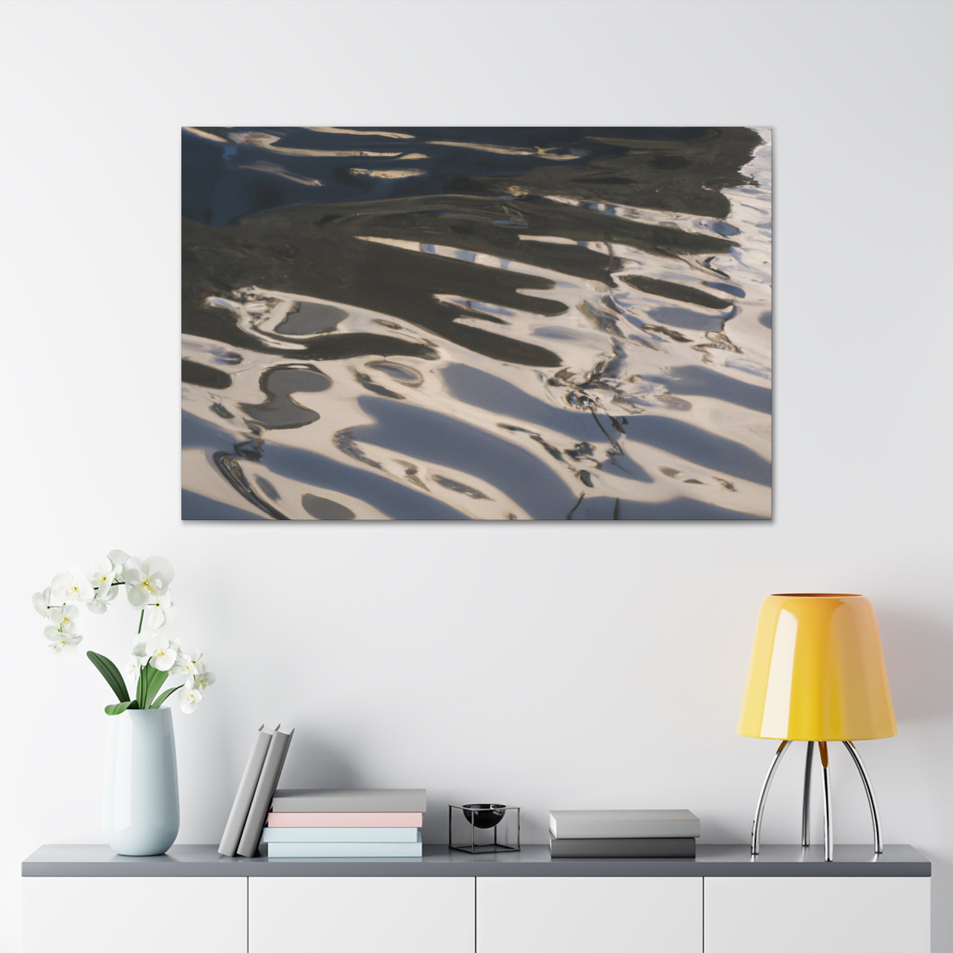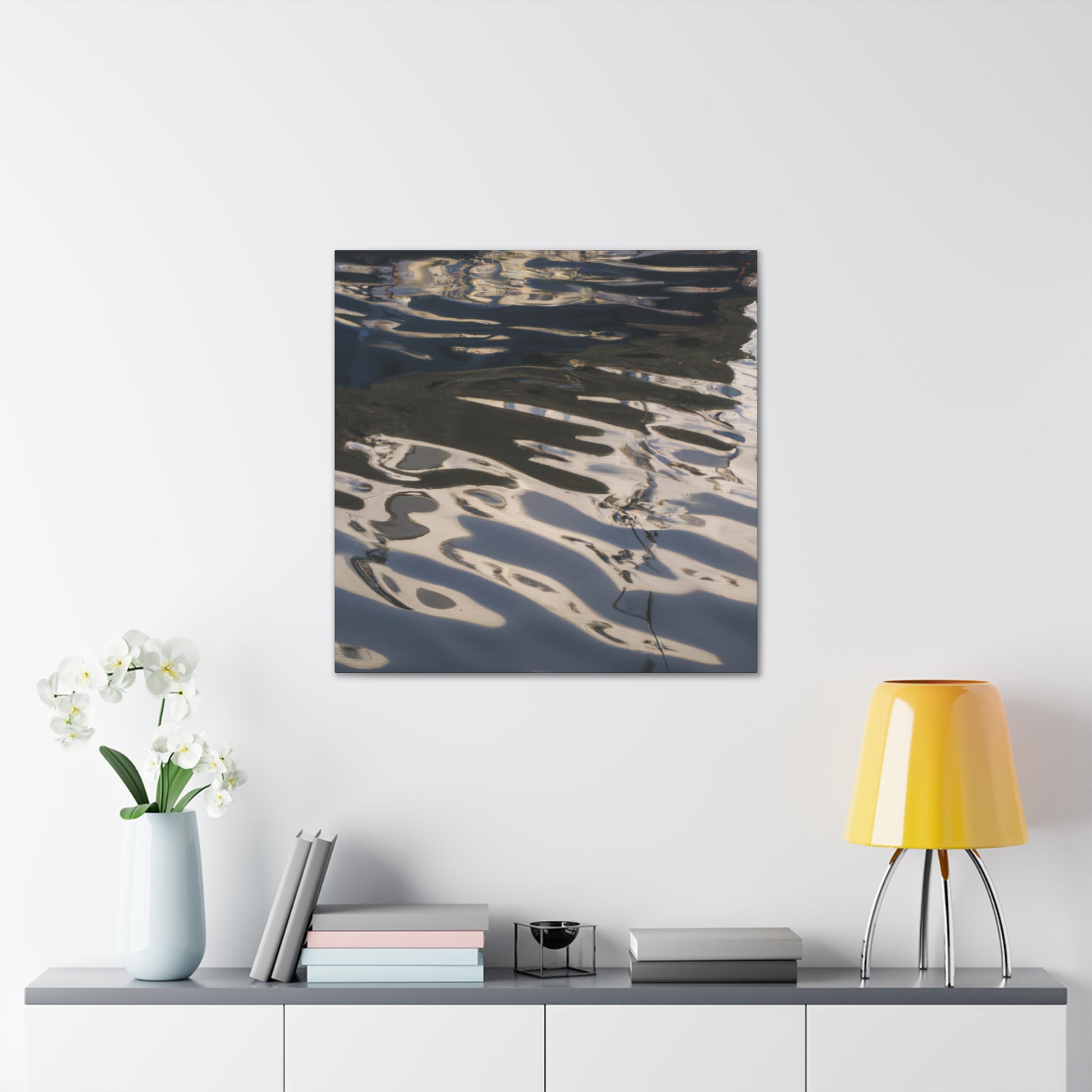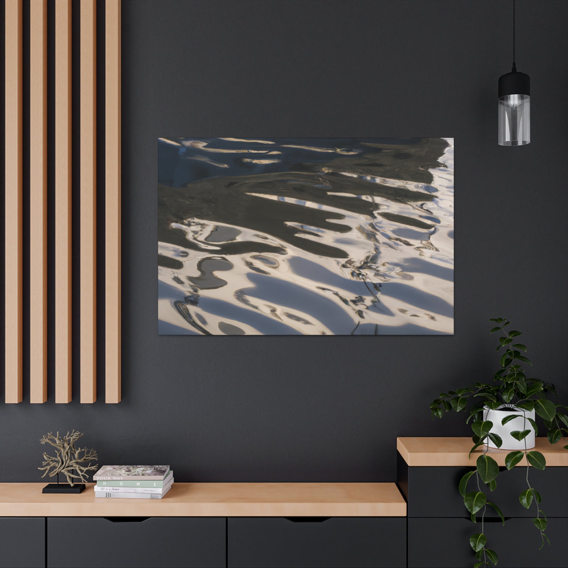 This canvas features the reflections and water paintings of a great artist. Take a moment to gaze into the rippling water and admire the vibrant colours. Let the tranquil beauty of this painting bring peace to any space. Perfect for any art lover and for those who appreciate the beauty of nature. #artist #waterpainting #reflections #artlover #art #homeinterior #canvasart #nature #home #beauty #calming