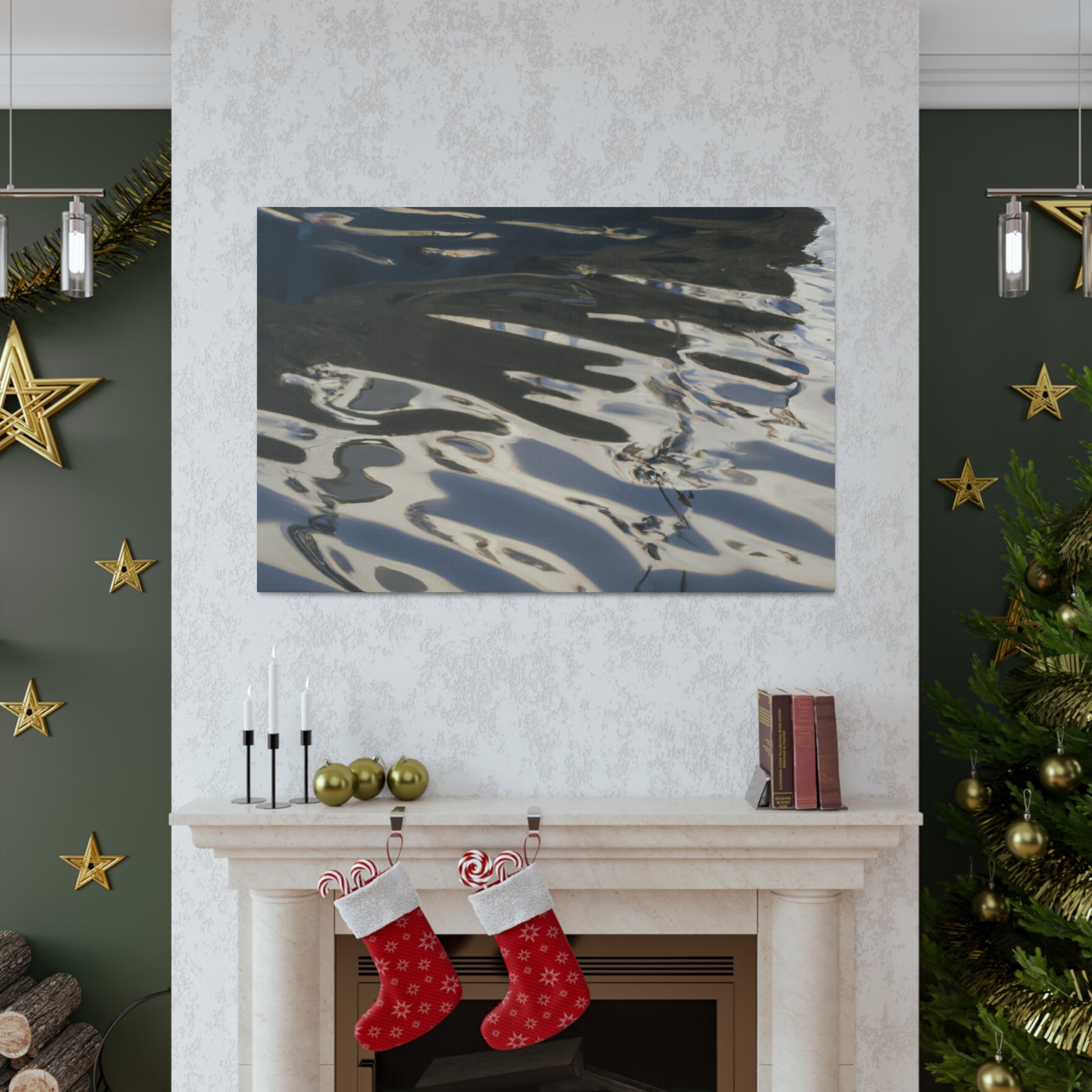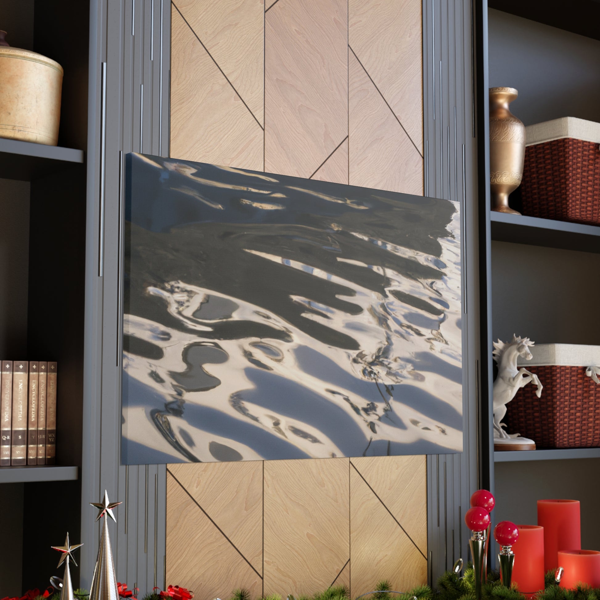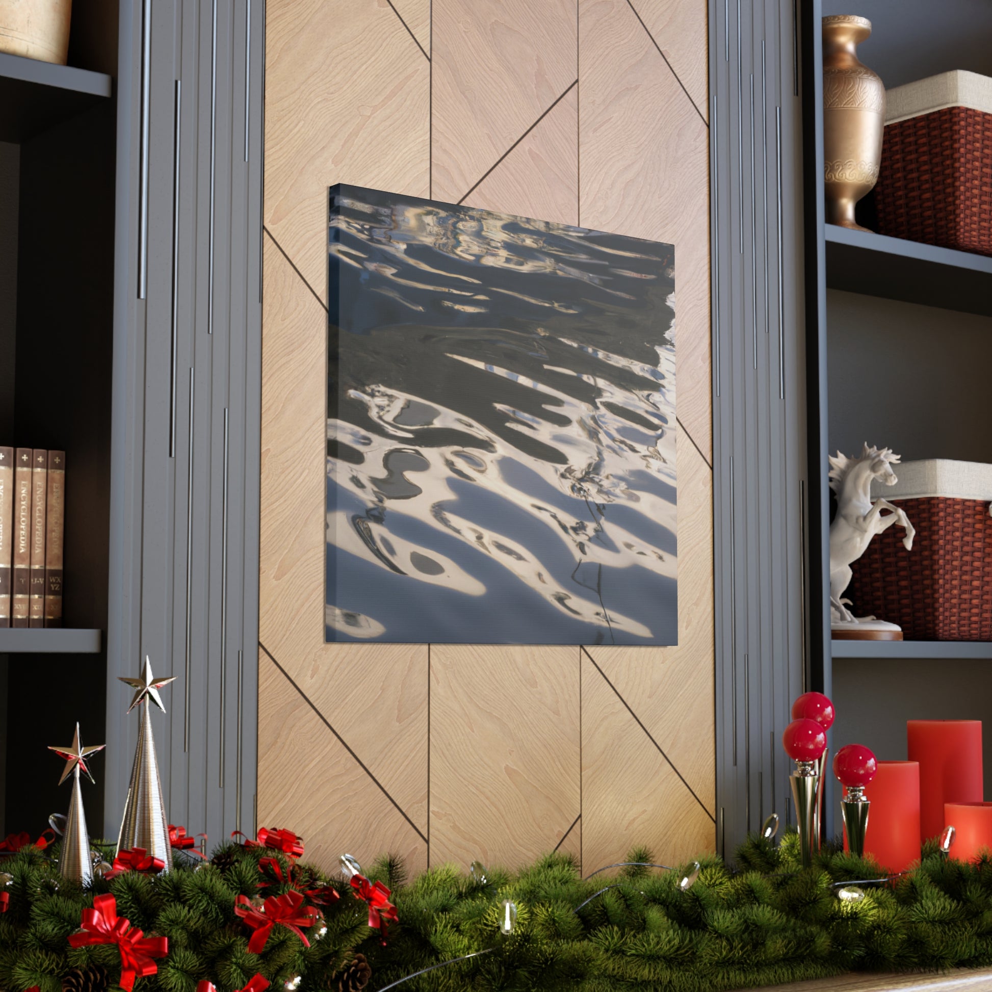 This canvas features the reflections and water paintings of a great artist. Take a moment to gaze into the rippling water and admire the vibrant colours. Let the tranquil beauty of this painting bring peace to any space. Perfect for any art lover and for those who appreciate the beauty of nature. #artist #waterpainting #reflections #artlover #art #homeinterior #canvasart #nature #home #beauty #calming