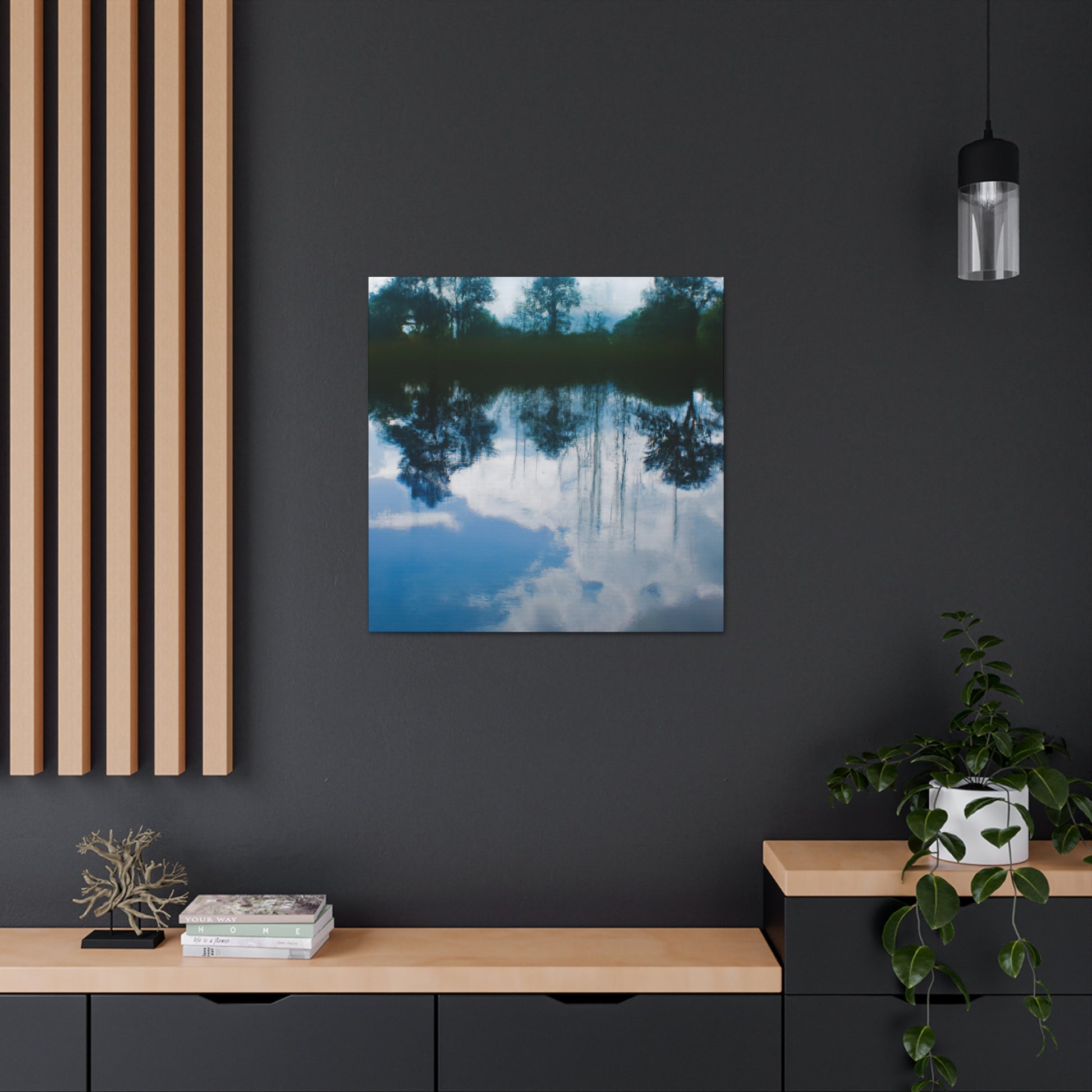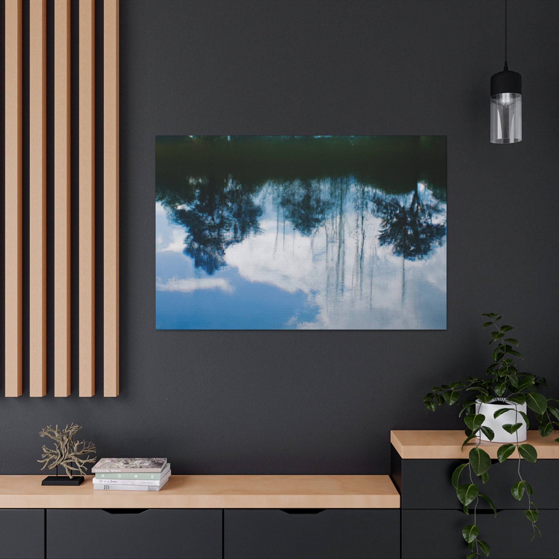 This canvas of a great artist is perfect for bringing a sense of artistic inspiration to any wall. Reflections and water painting effects come alive and are highlighted by the use of bold colors. It will look beautiful in any living room, office, or bedroom. Treat yourself to style and delight with this unique and beautiful canvas. #artist #canvas #reflections #waterpainting #boldcolors #uniquecanvas #style #artisticinspiration #décor #homeaccessories #homesweethome #wallart