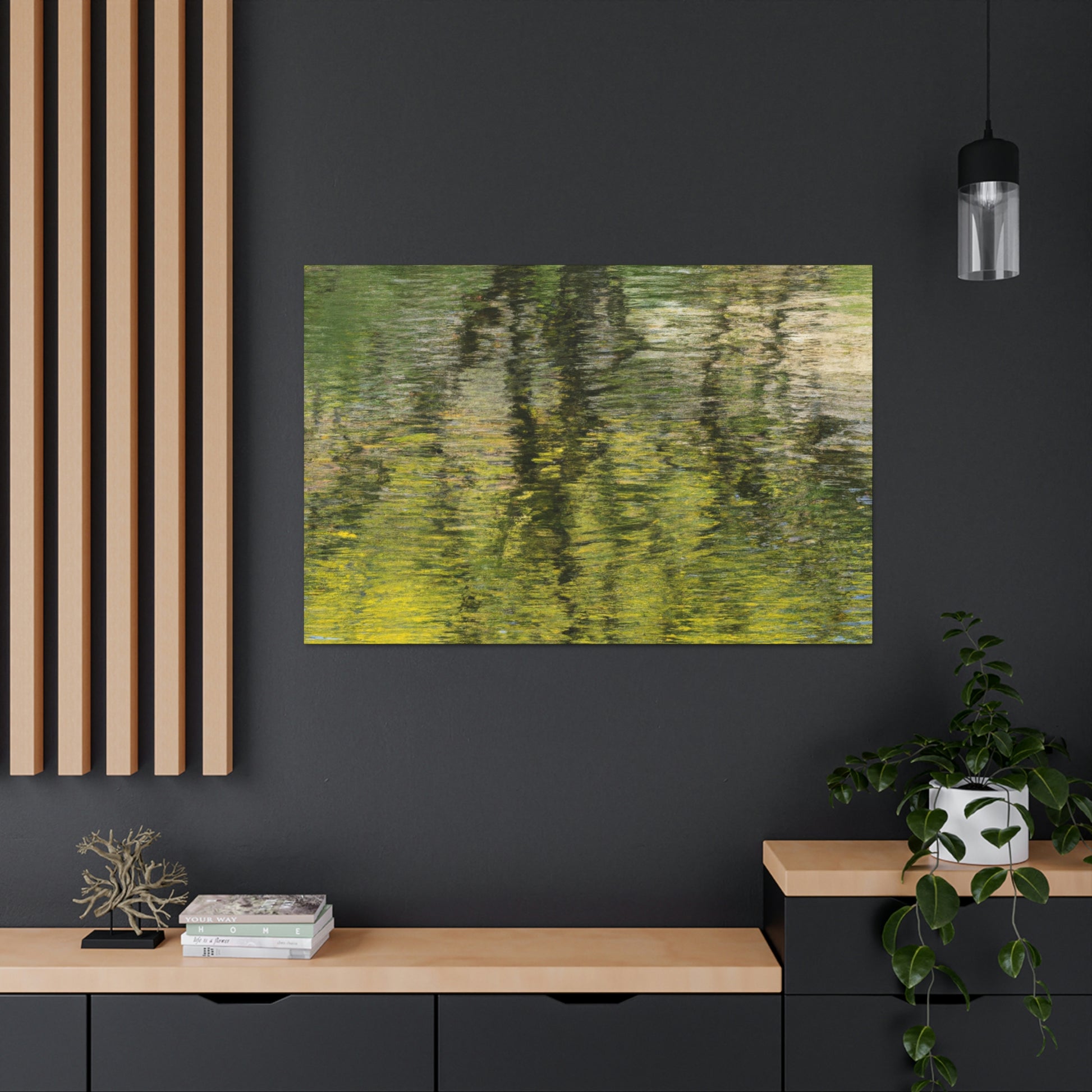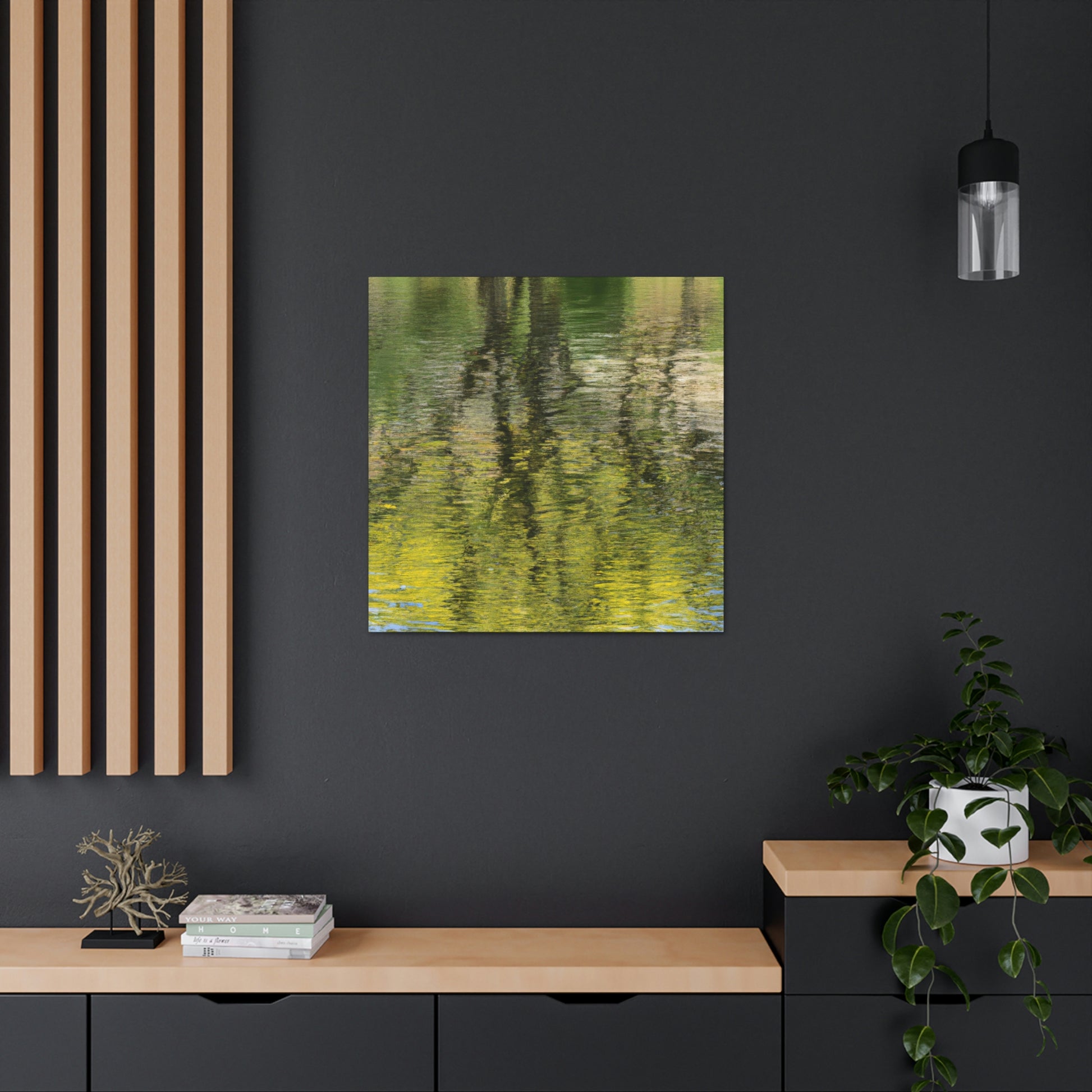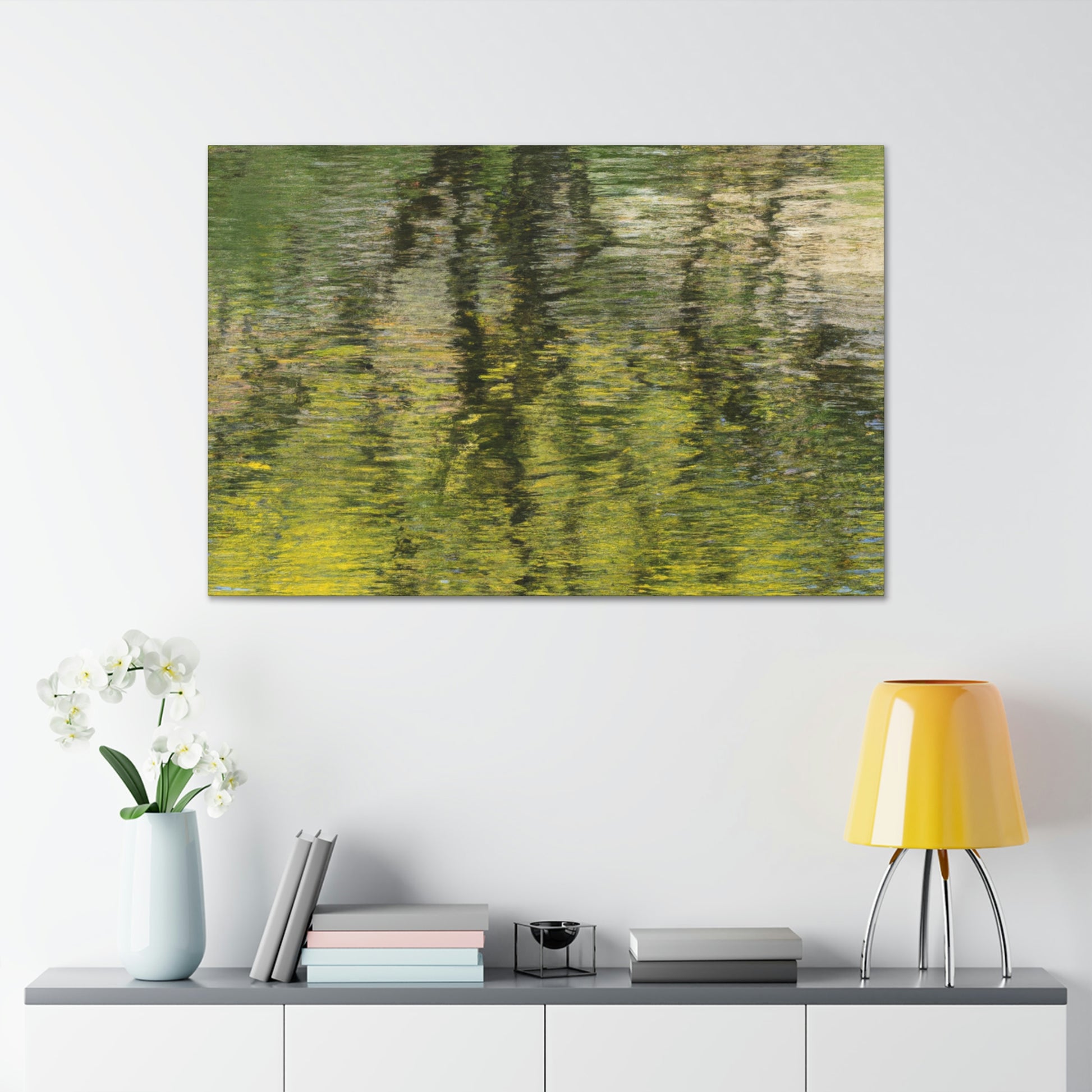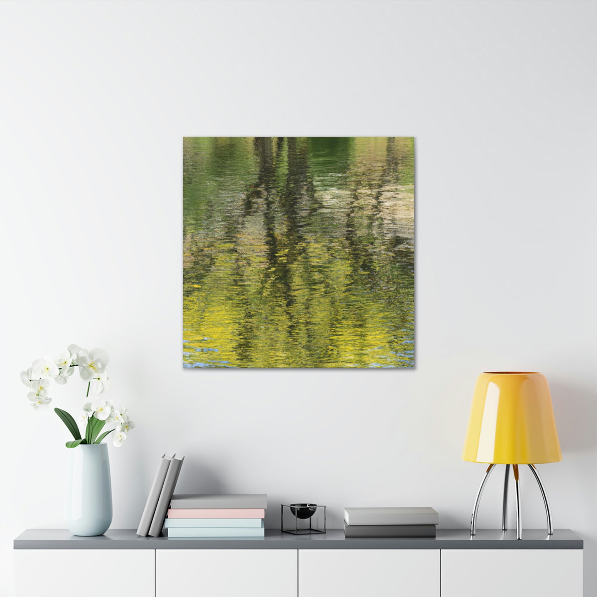 This beautiful canvas features an artist's reflection on nature and water painting. Its unique style conveys the inner beauty and tranquility of the artist, making it the perfect choice for any home decor. The brilliant splashes of colour bring life to the piece, transforming it into a work of art. Hang this magnificent work of art and let its mesmerising creativity capture your heart and soul. #Canvas #Painting #Art #WaterPainting #Nature #Reflection #HomeDecor #WallDecor #Artist #InnerBeauty #Tranquility