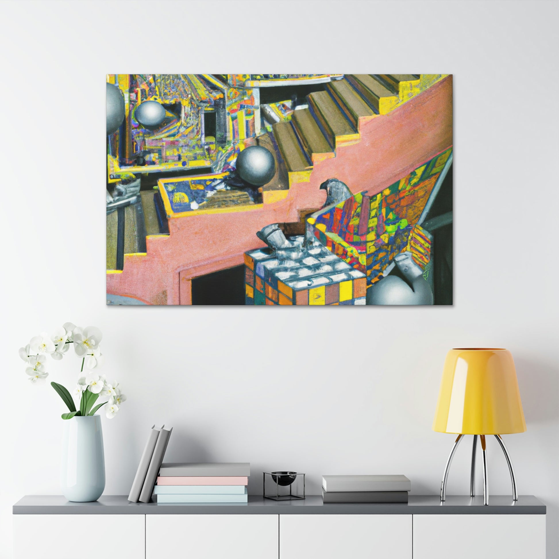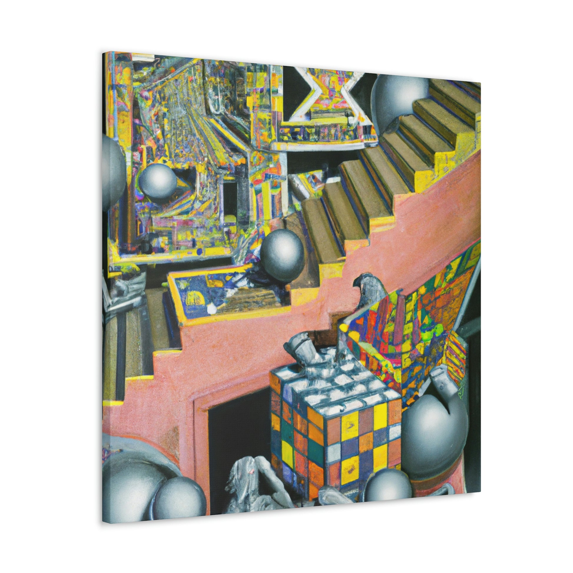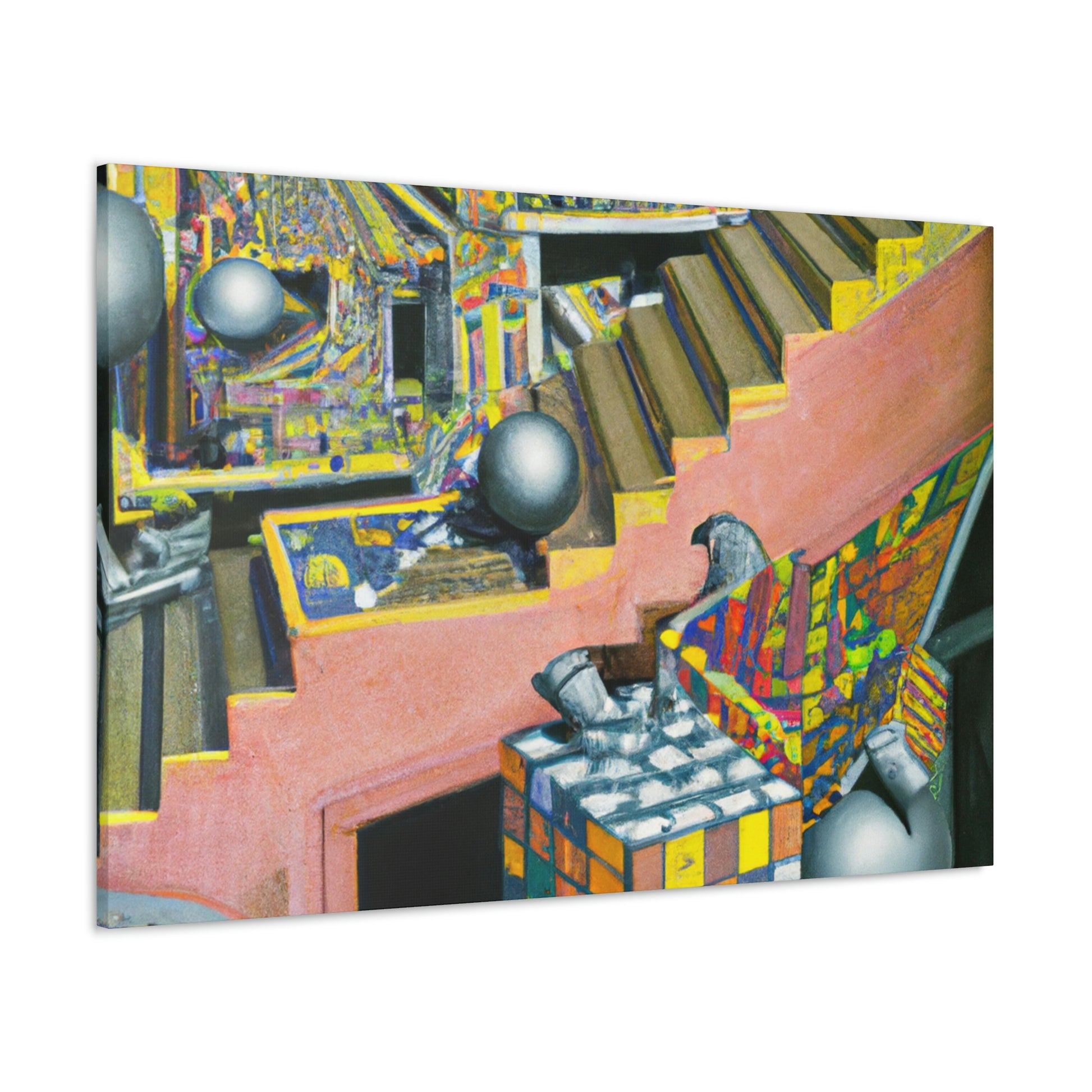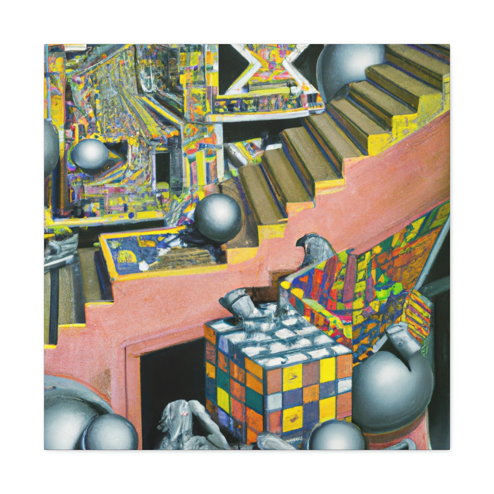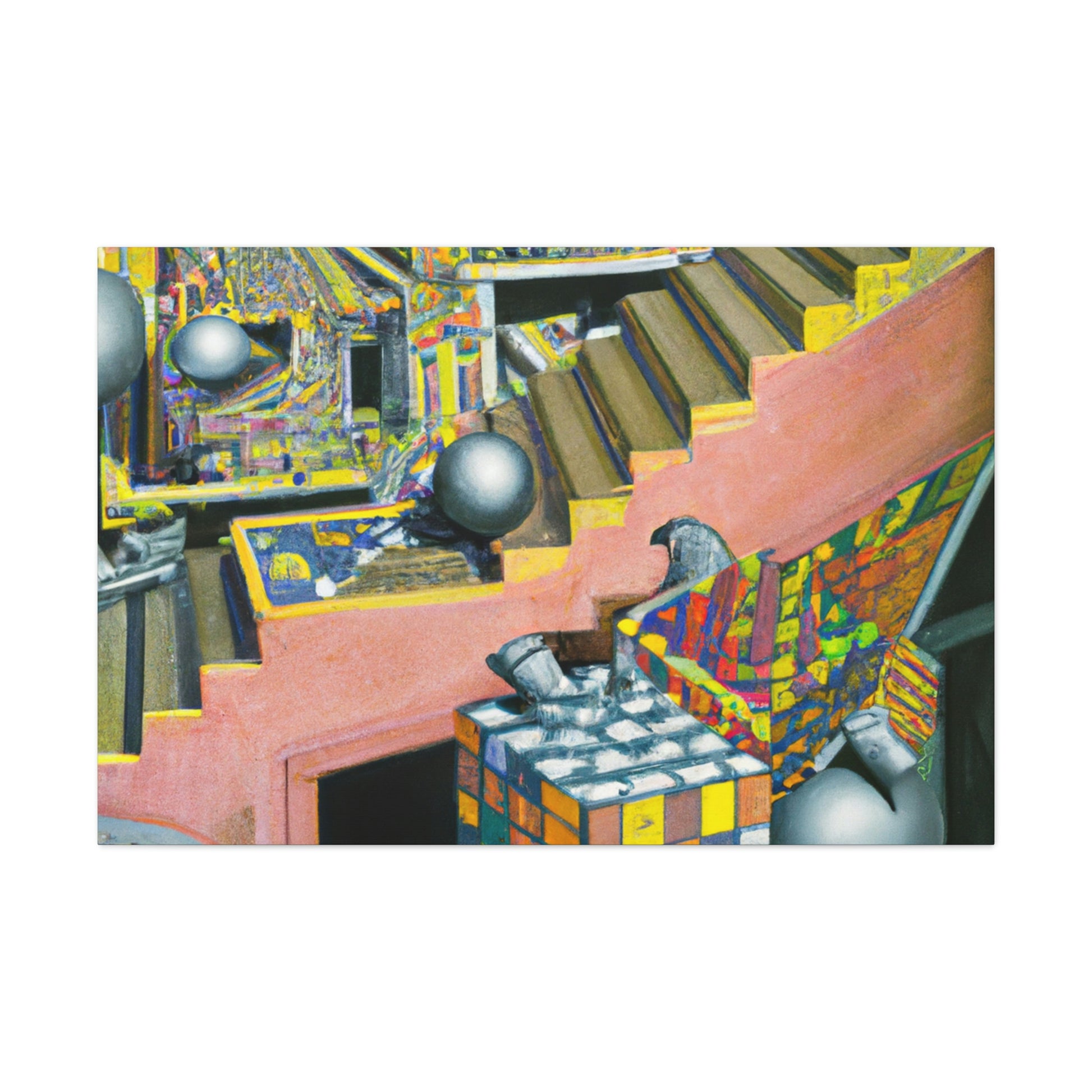 Create your own surreal and unique mezzotint masterpieces like the iconic works of M.C. Escher with this canvas! Explore the depths of color, intricate detailing and mind-bending optical illusions that this canvas offers. From the playful "Relativity" to the mysterious "Metamorphosis", bring color and life to your creative vision with this canvas and etch in your own Escher-like masterpiece. #MCEscher #Mezzotint #OpticalIllusions #FineArt #Painting #CreativeVision #IntricateDetail #Surreal #Unique #Masterpiece #Colorful #Relativity