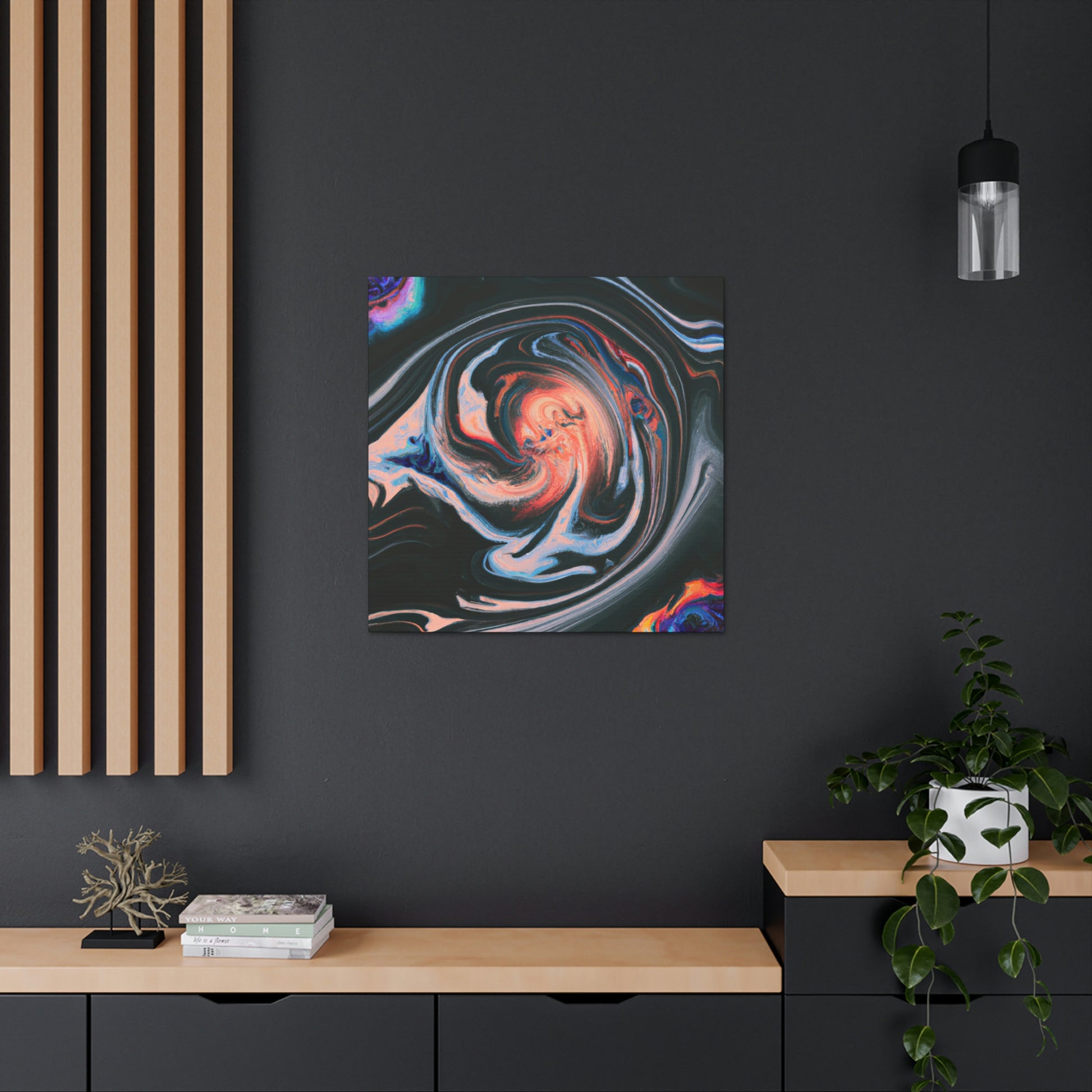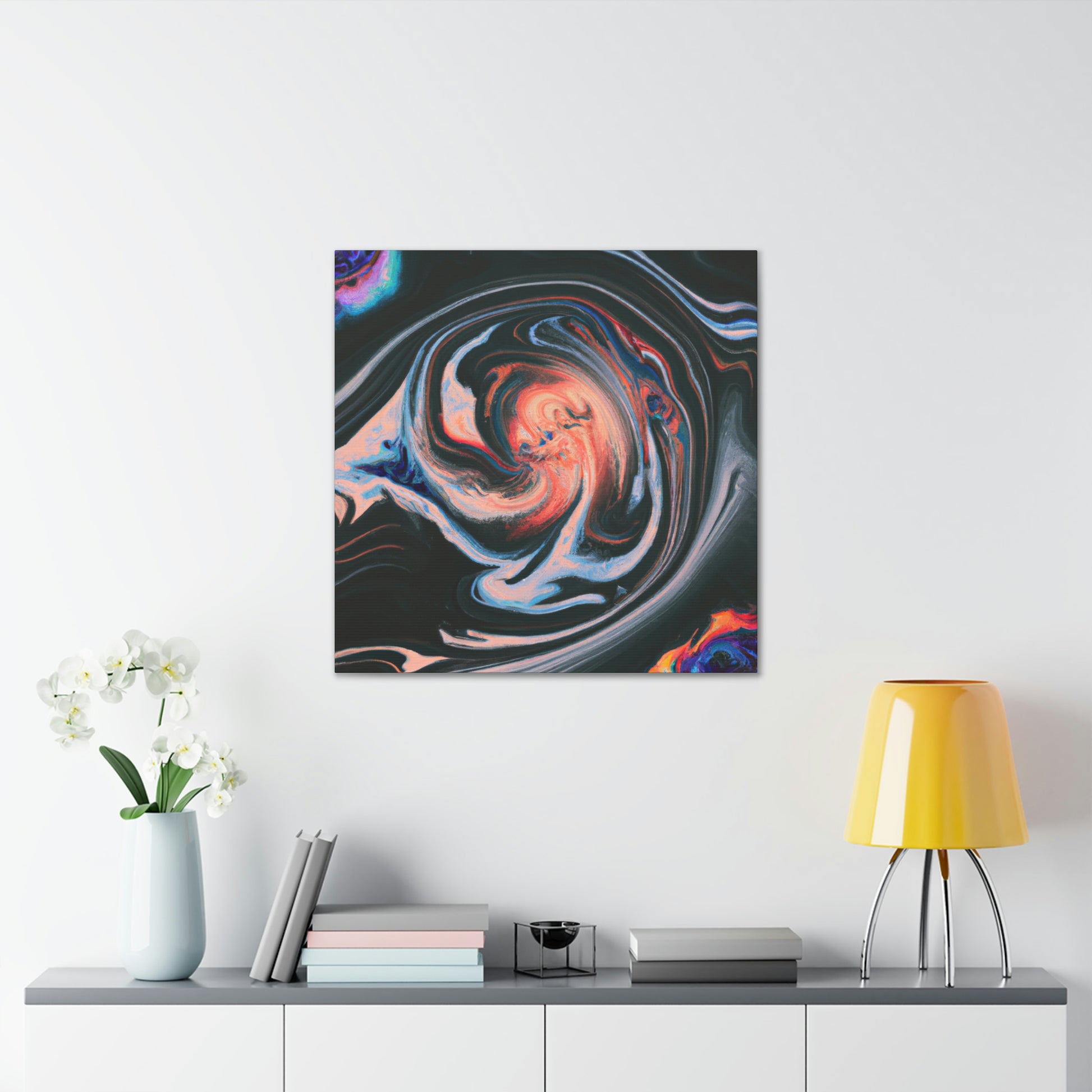 This brightly colored canvas combines classic artistic technique with modern abstract styling for a unique piece of art. Rich paint movement and interesting texture capture the eye and delight the mind. Whether you hang it in your home or office, it will add a bold and creative touch to any room. Perfect for those who appreciate a trippy take on classic painting! #art #canvas #painting #abstract #psychedelic #trippy #design #style #visual #artist #modernart #andhome