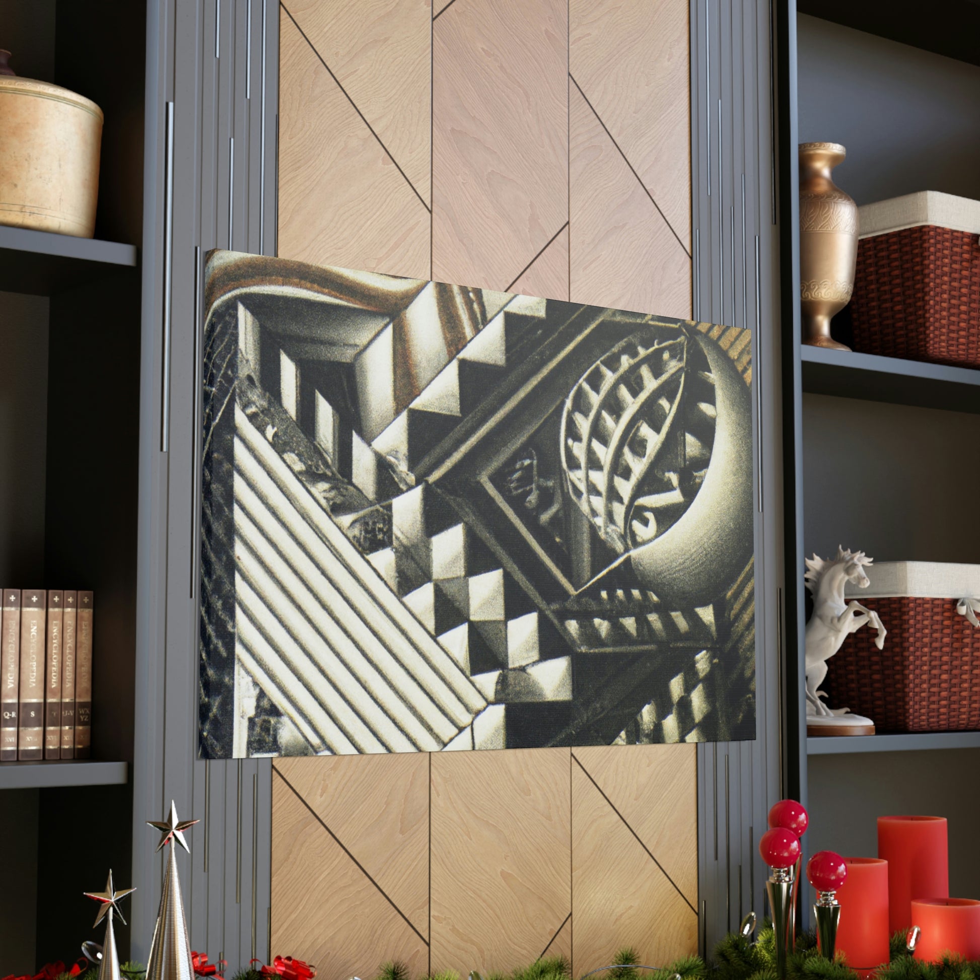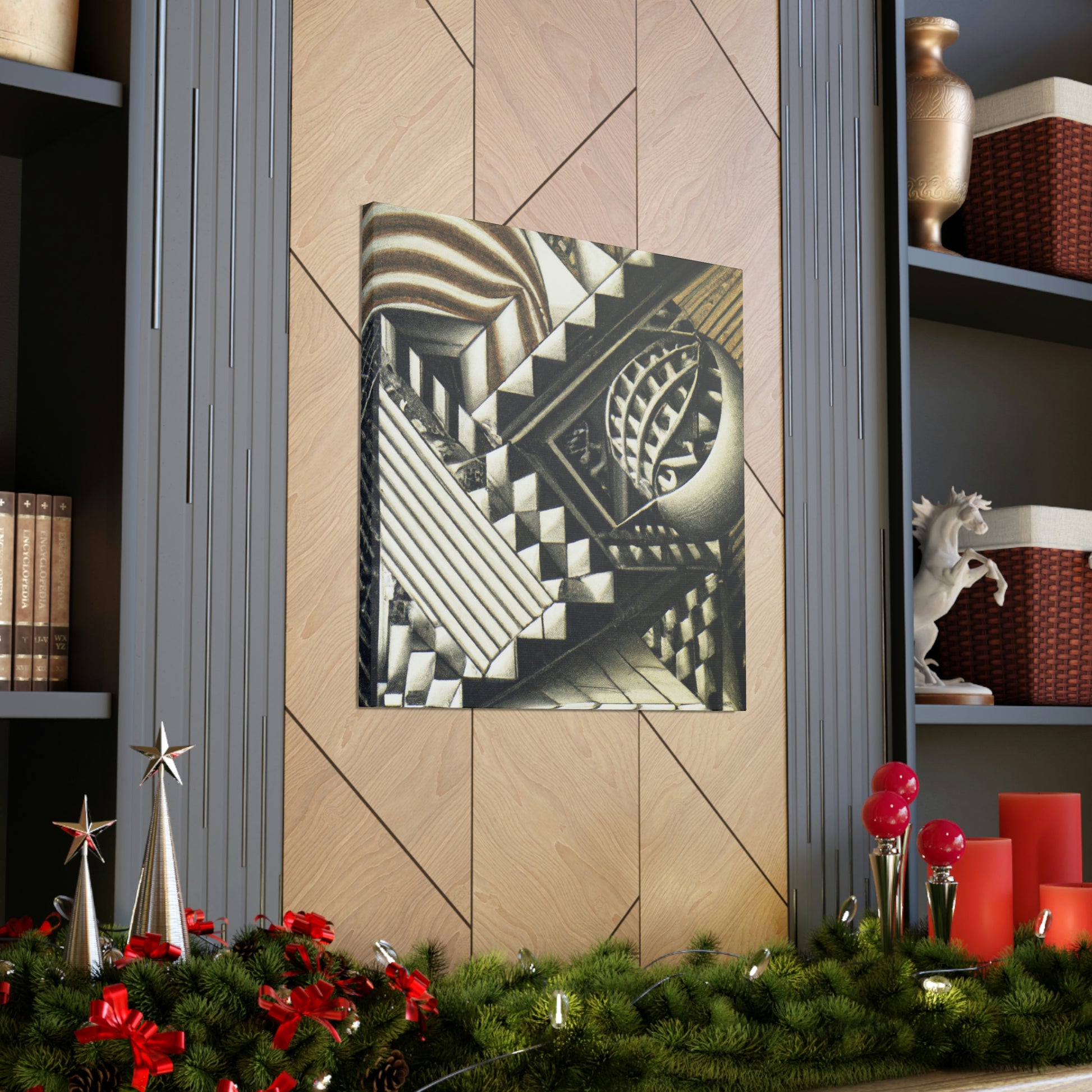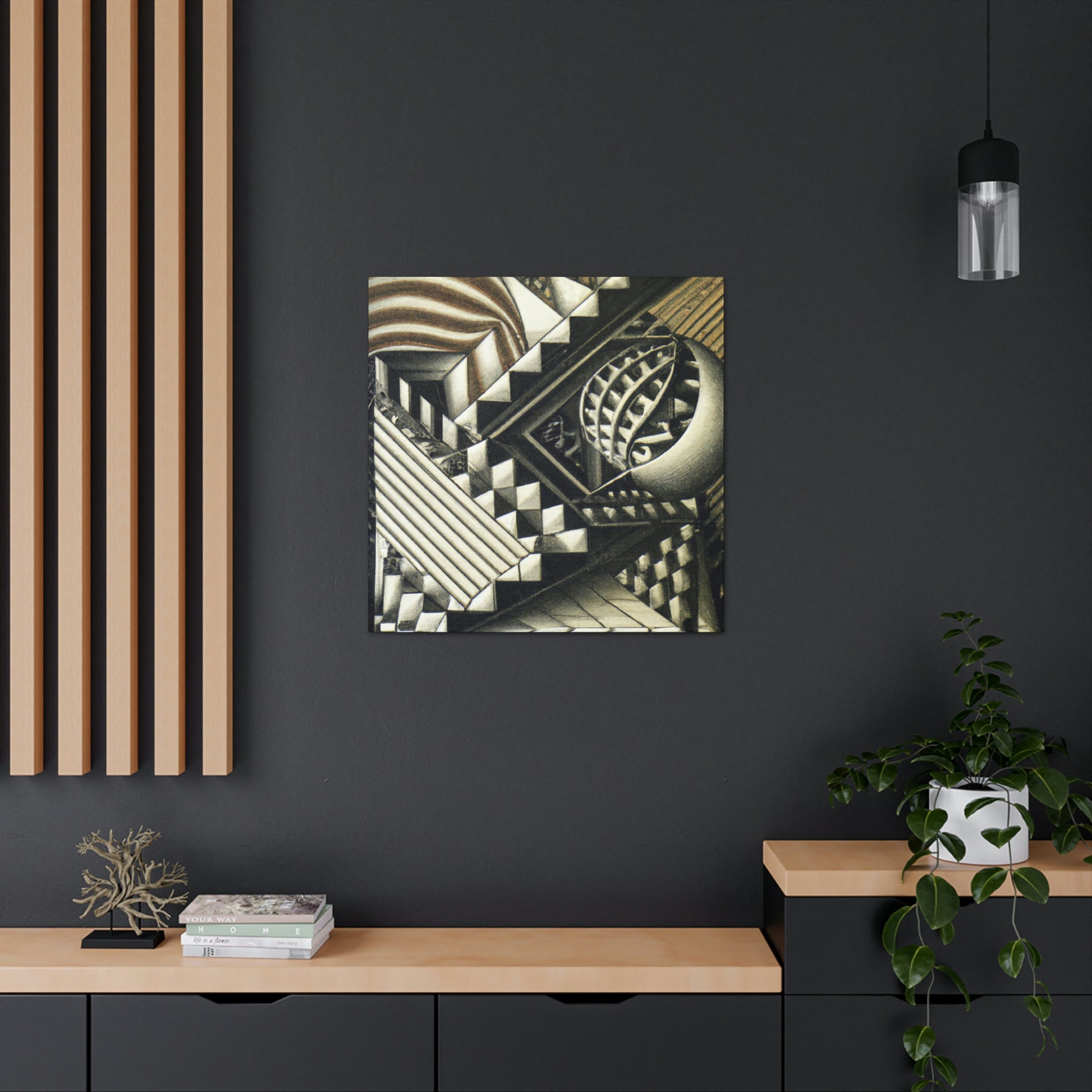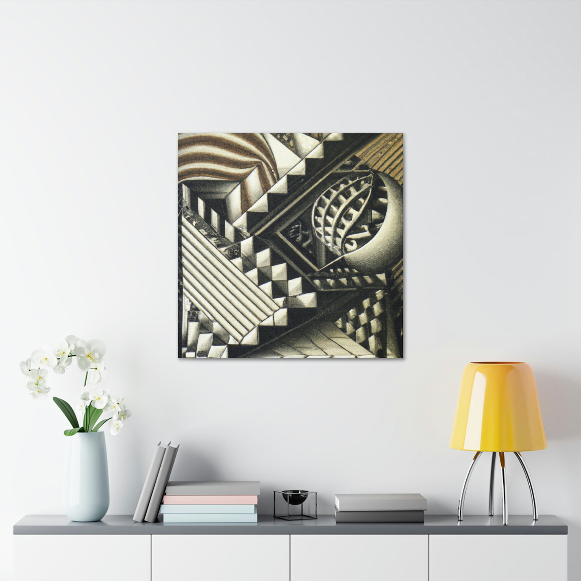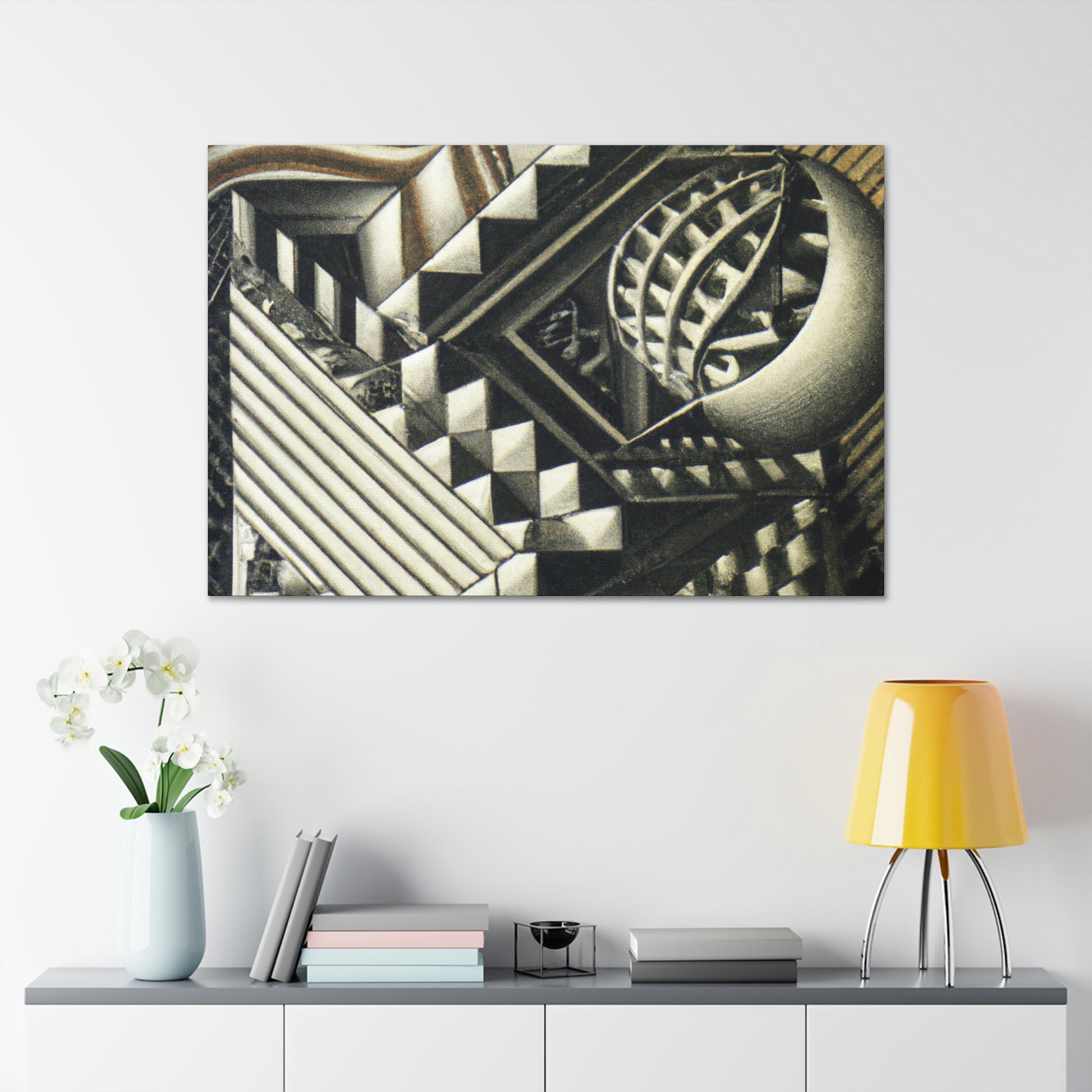 This masterful canvas features M.C. Escher's vivid mezzotints painted with exceptional precision, intricate detail, and eye-catching optical illusions. Colorful and stimulating, these unique prints will be guaranteed to amaze! #mescherart #opticalillusion #canvaspainting #meschercanvas #colorful #stimulating #vivid #detail #mathematical #precision #masterful #amazing